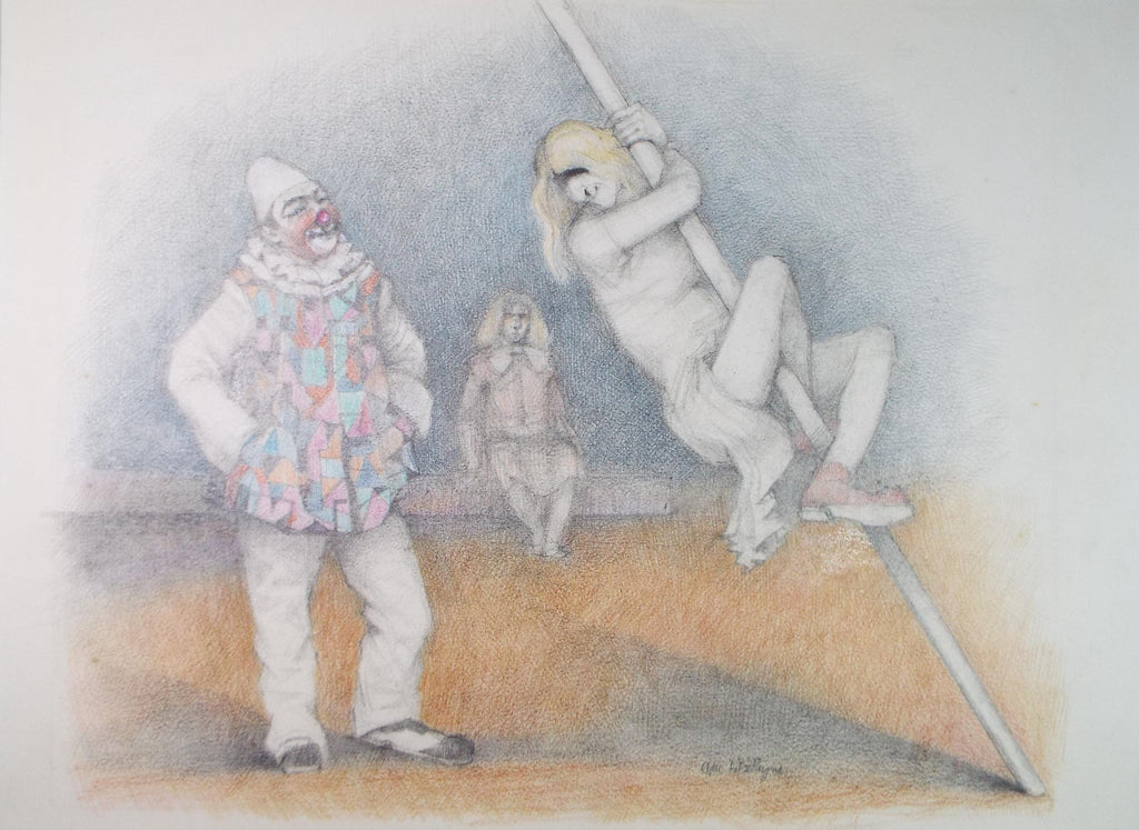 Coloured pencil Drawing, 'Clowns', c1990s,Alice Mary Fitzpayne (b.1928)