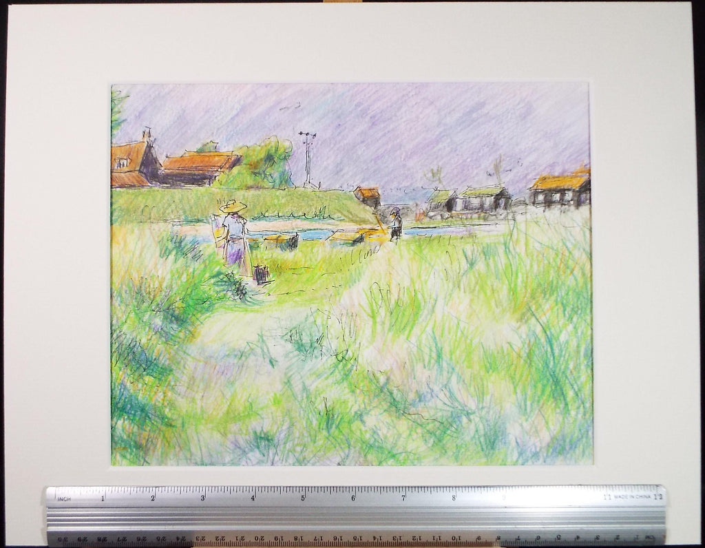 Coloured Pencil drawing 'Working the Land', Pauline Plummer (b1933), Circa 1990's