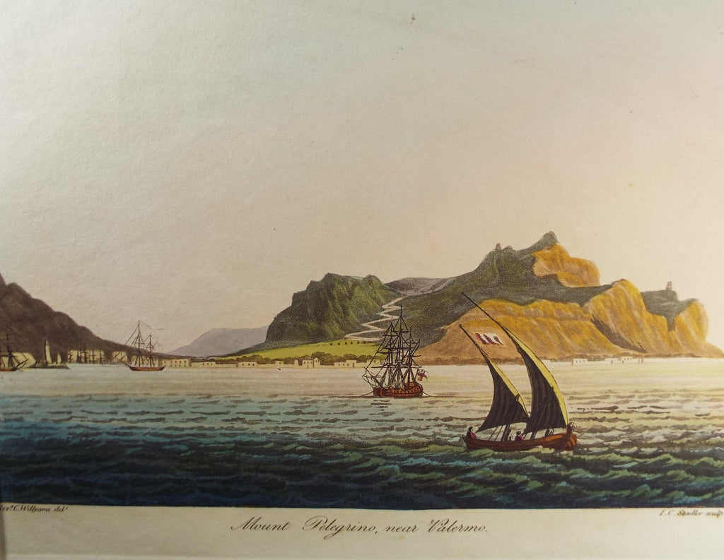 Original Aquatint, Rev. Cooper Williams & J. C. Stadler, 1798 - 'Mount Pelegrino, Near Valermo' from 'A Voyage up the Mediterranean in His Majesty's Ship The Swiftsure'