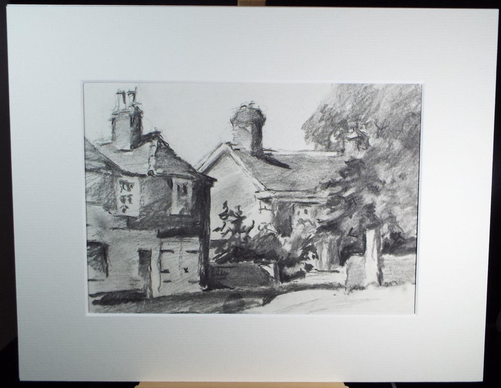 Original Charcoal drawing, 'Pinner High Street', dated 1973, R.A Andew-Jones