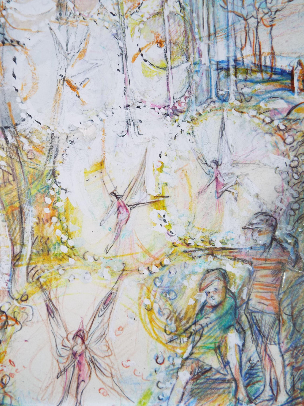 Original coloured pencil & Gouache,'Childen by a fairy pool', 2005, John Gilbey Bowles (1929-2011)