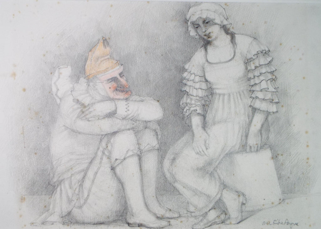 Original coloured pencil Drawing, 'Mr Puch with Judy', c1990s,Alice Mary Fitzpayne (b.1928)