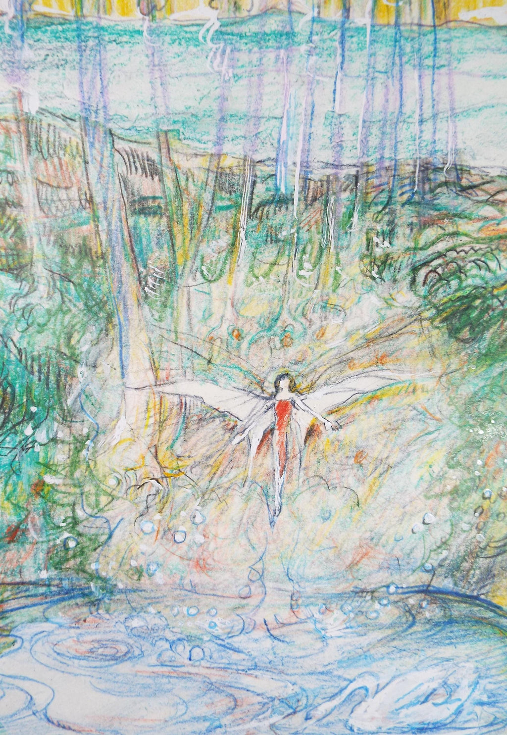 Original coloured pencil & Gouache,'A fairy pool', 2005, John Gilbey Bowles (1929-2011)