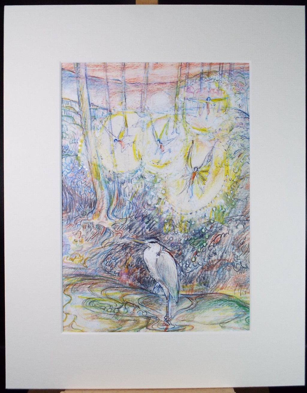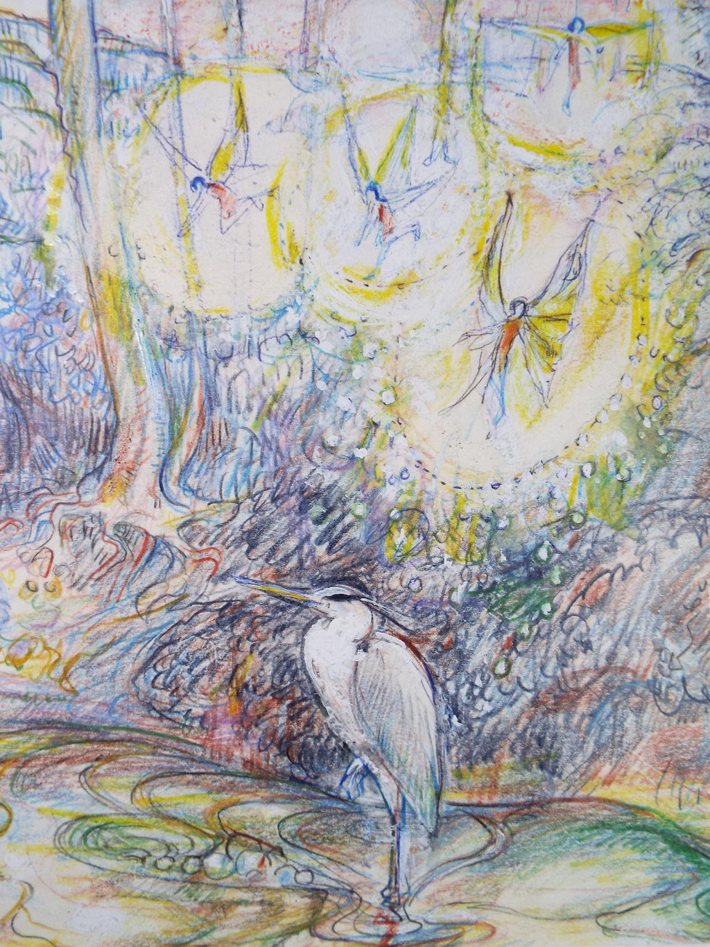 Original coloured pencil & Gouache,'Heron by a fairy pool', 2005, John Gilbey Bowles (1929-2011)