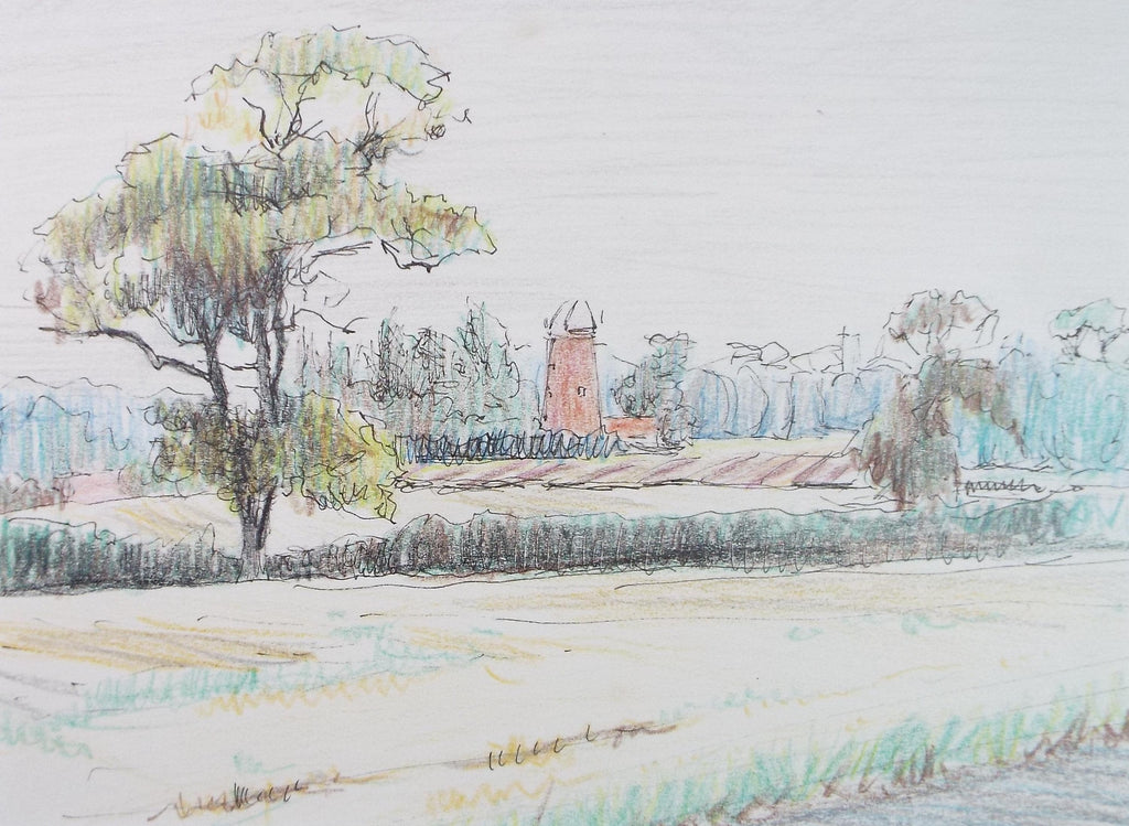 Original coloured pencil, Sail less Windmill', Circa 1990's, Pauline Plummer (b1933)