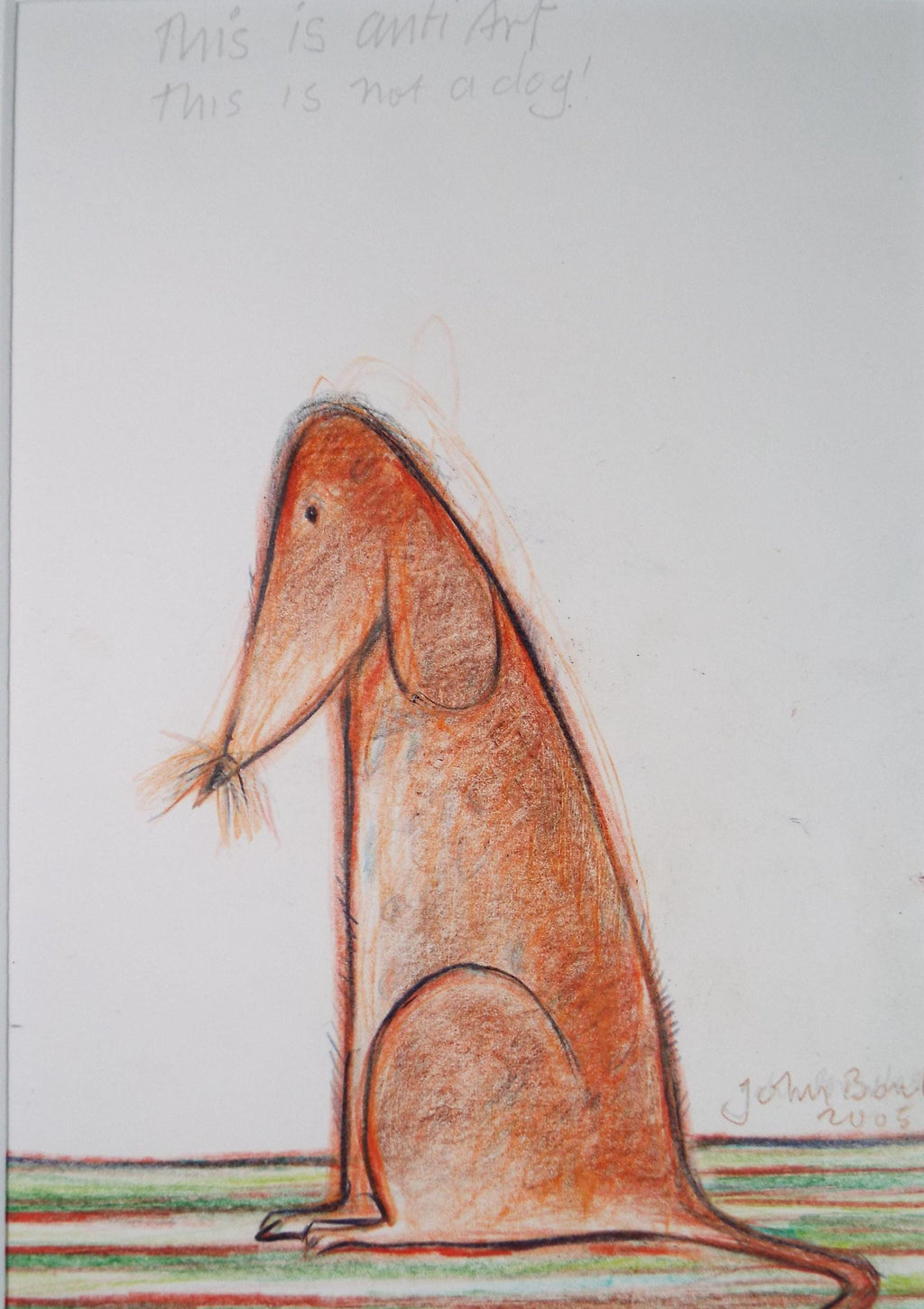 Original coloured pencil,'Anti dog', 2005, John Gilbey Bowles (1929-2011)