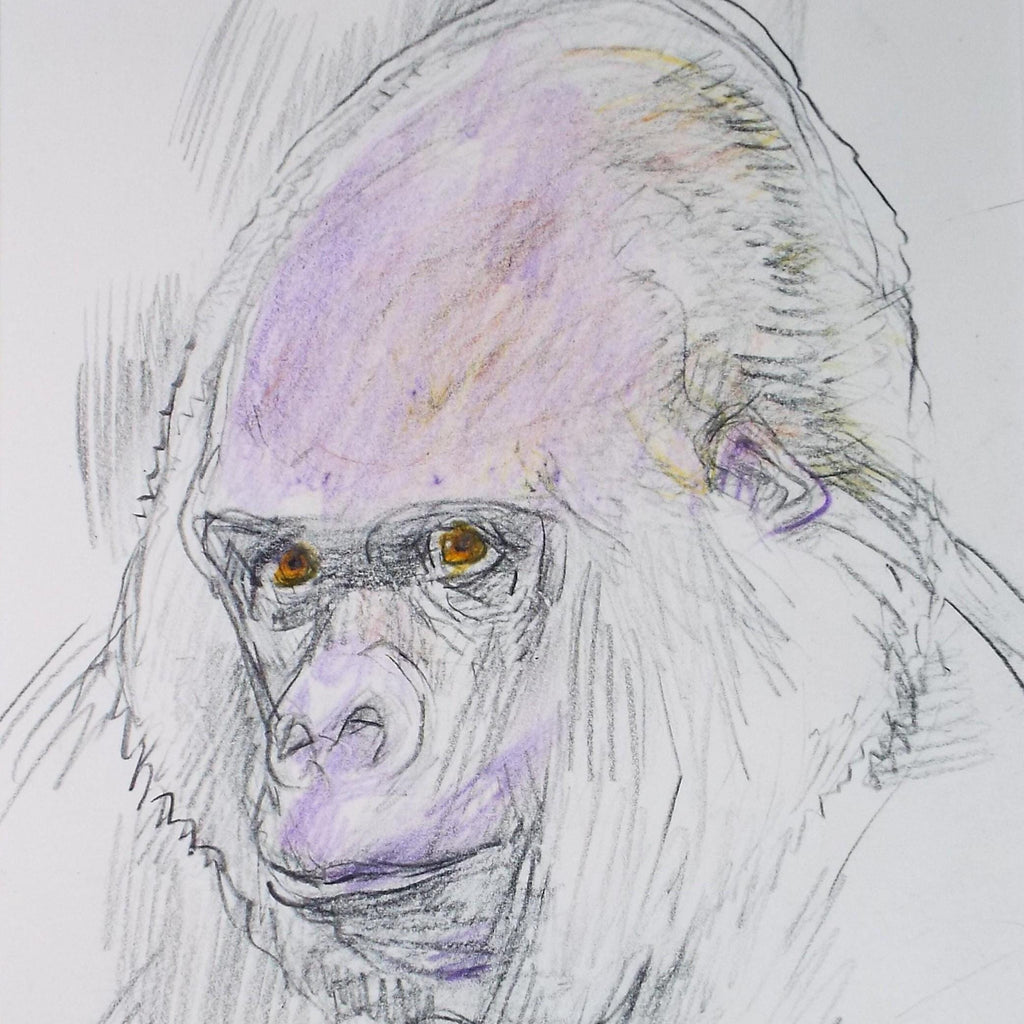Original coloured pencil,'Gorilla', 2005, John Gilbey Bowles (1929-2011)