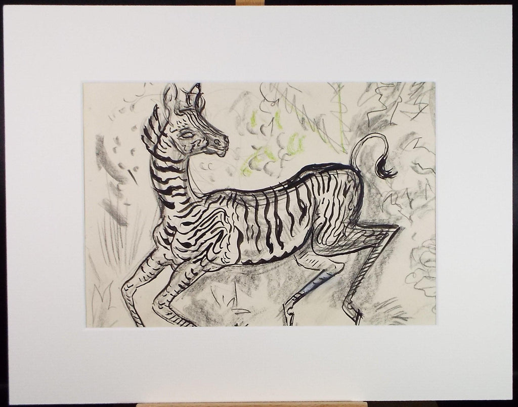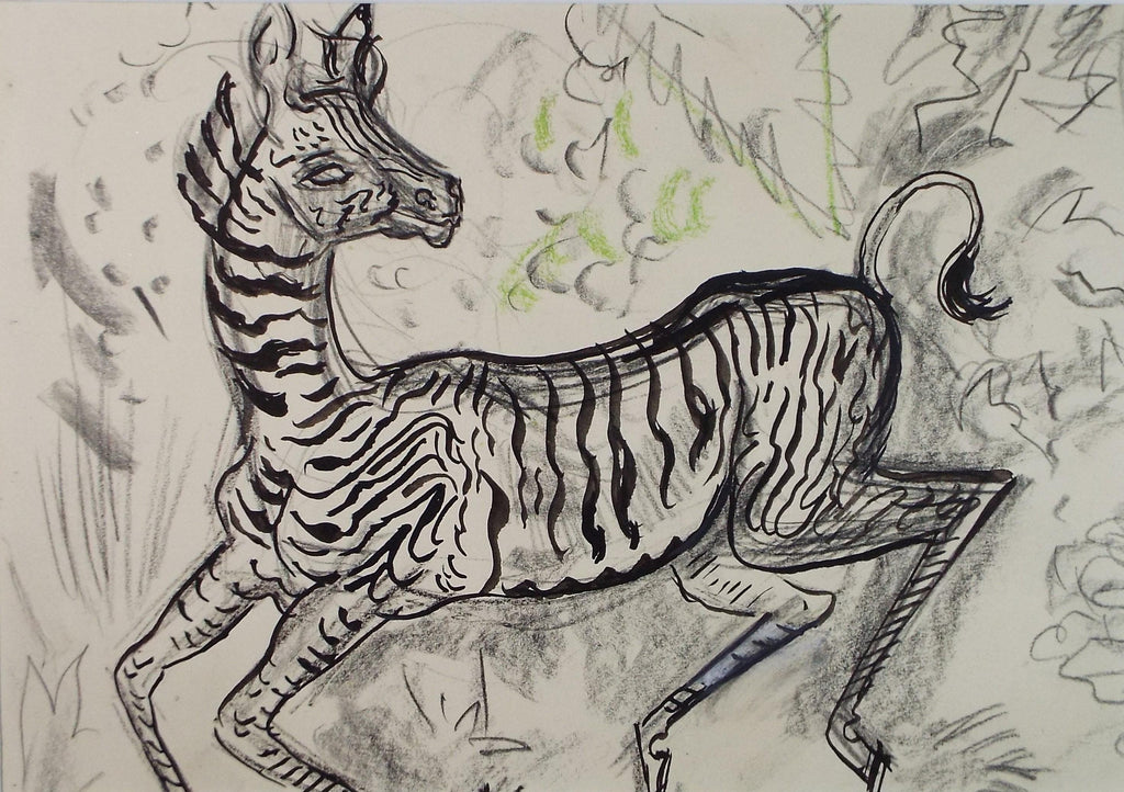 Original Conte & Ink Drawing, 'Zebra', Dated 1950, Henry Saunders (1918-1982)