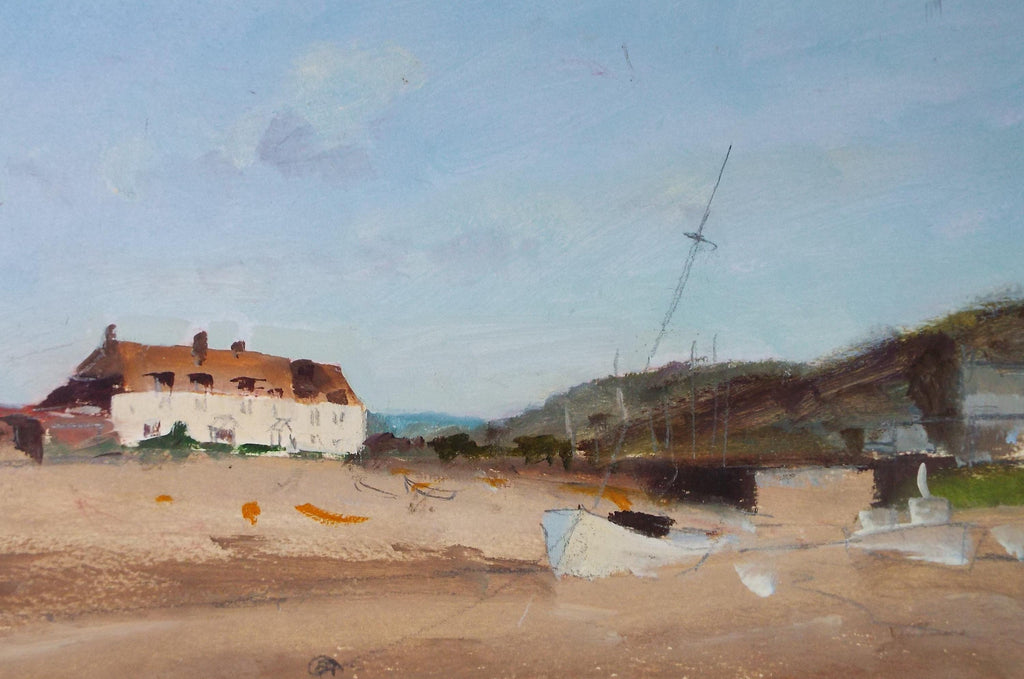 OOriginal Gouache, 'Coastal Cottages with boats', Circa 1980's, Artist Unknown