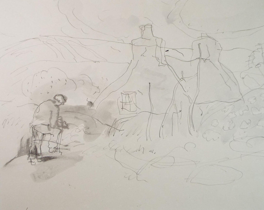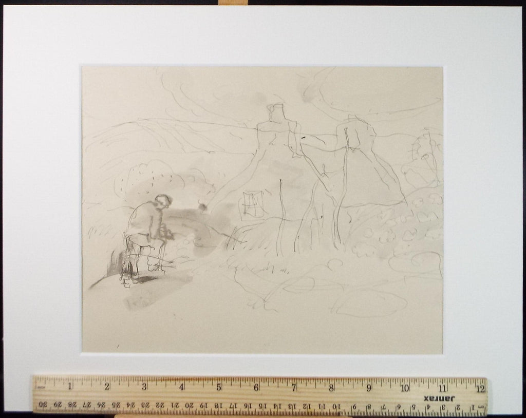 Original ink & wash, 'Cottage with figure' c1950's - William D Clyne (1922-1981)