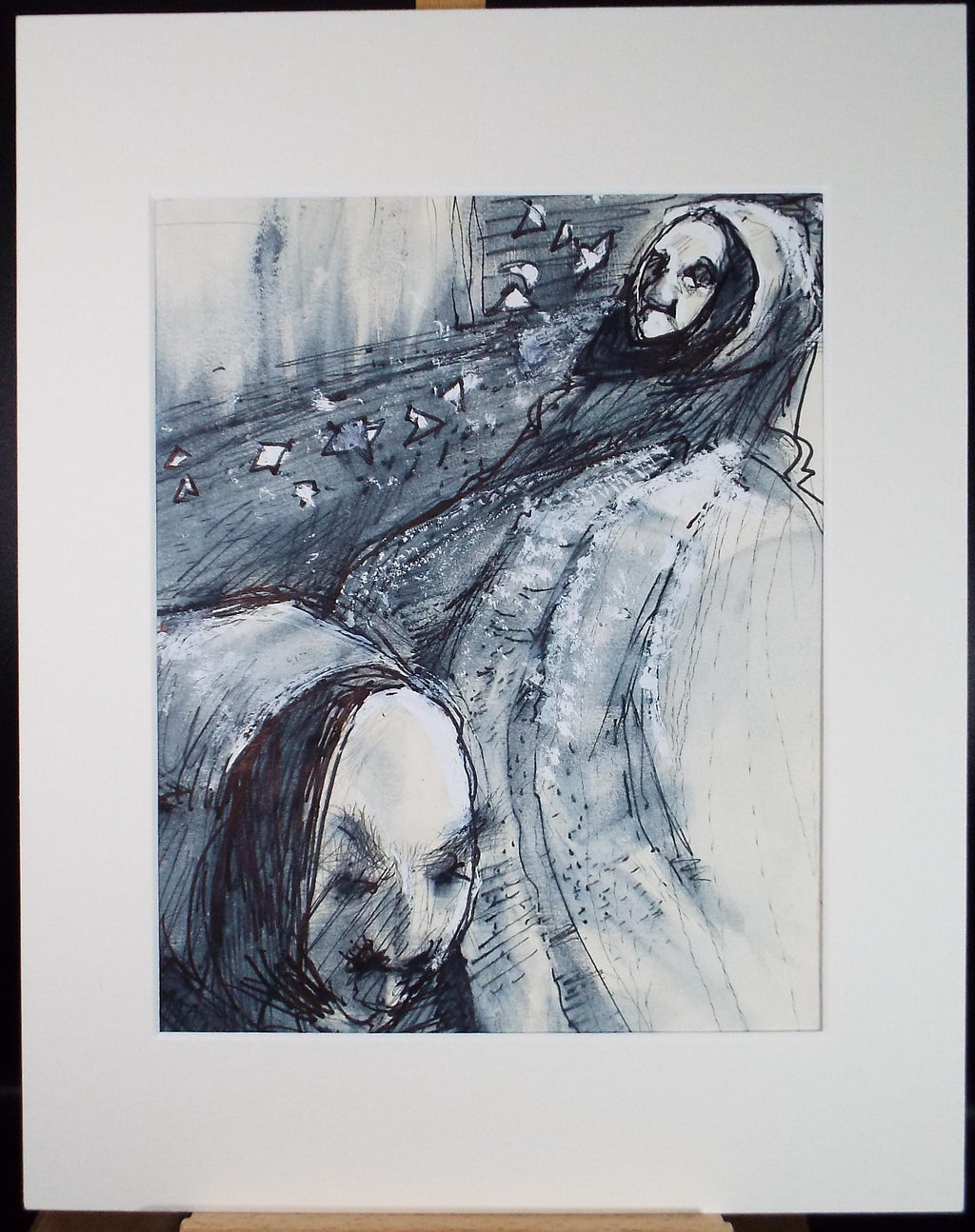 Mounted ready for framing on soft white card and matching backing card with cellophane protective wrapping