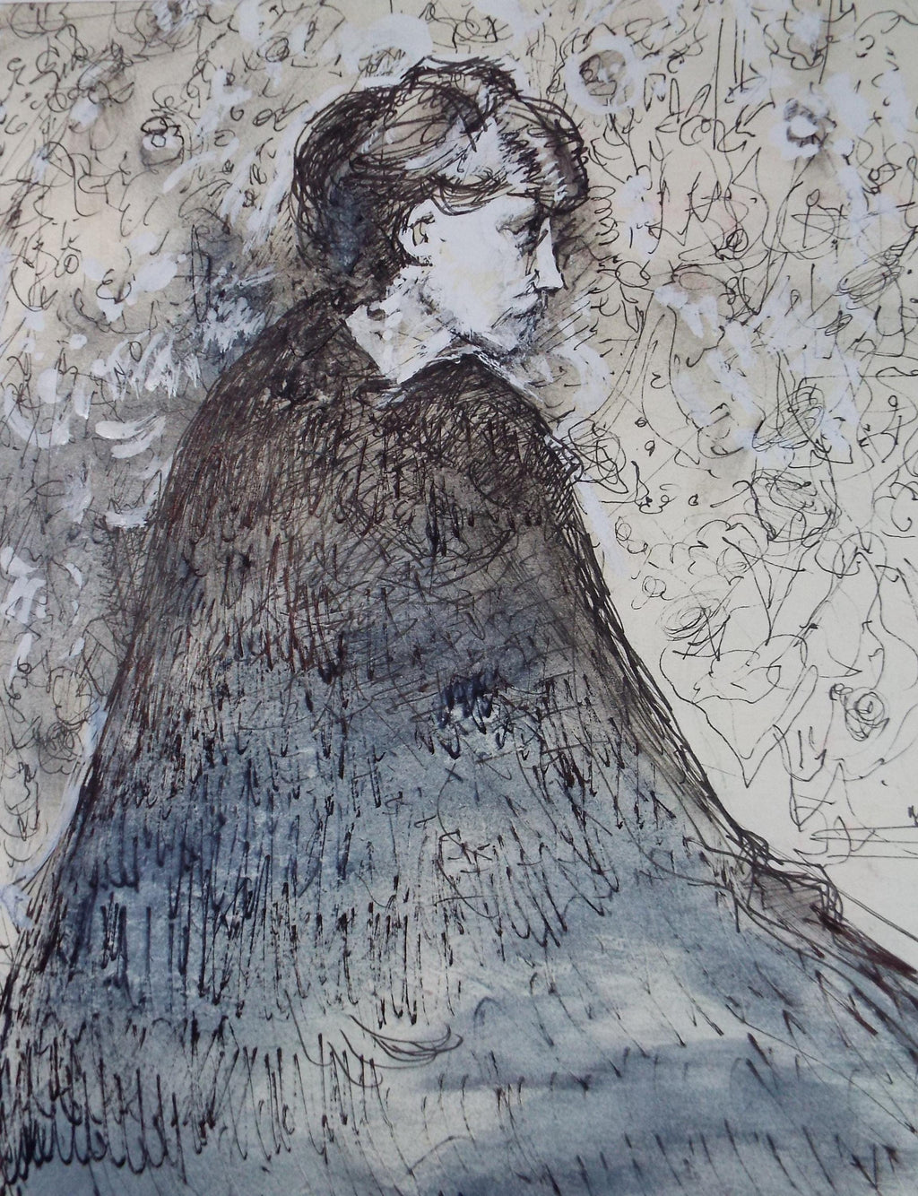 Original Mixed Media, 'Woman in a Cape', John Gilbey Bowles (1929-2011), Circa 1990's