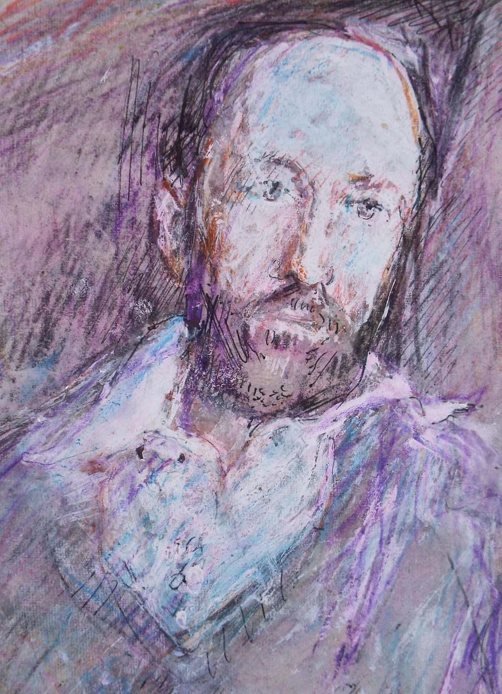 Original mixed media,'Bearded Man', circa 1990's, John Gilbey Bowles (1929-2011)