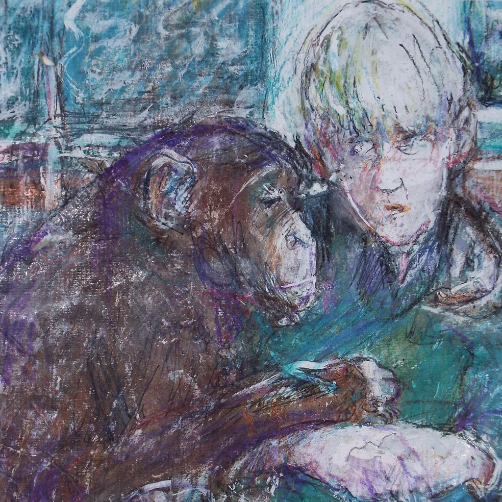 Original mixed media,'Boy with Chimpanzee', circa 1990's, John Gilbey Bowles (1929-2011)