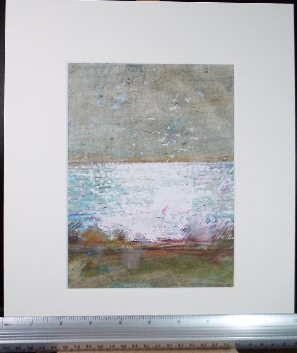 Mounted ready for framing on soft white card and matching backing card with cellophane protective wrapping