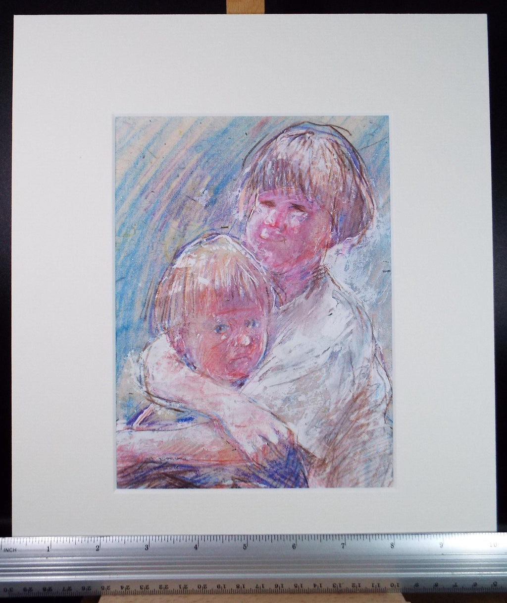 Original mixed media,'Two Children', circa 1990's, John Gilbey Bowles (1929-2011)