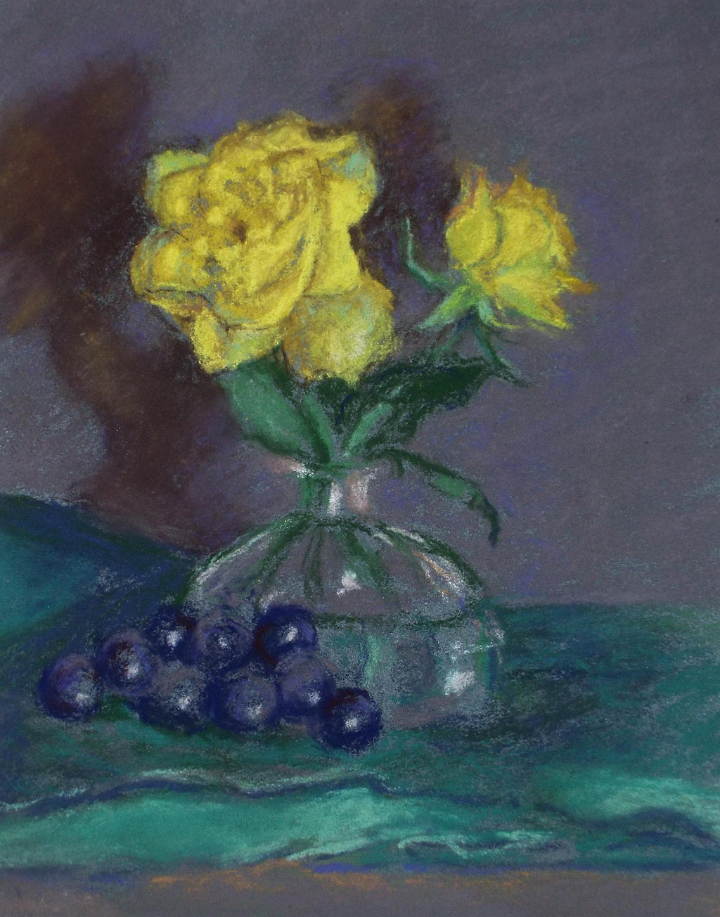 Original pastel Drawing 'Still life of yellow roses', Pauline Plummer (b1933), Circa 1990's