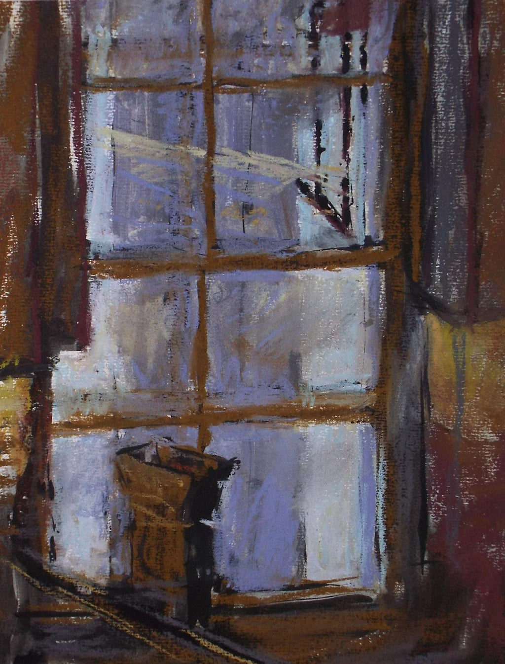 Original pastel drawing, 'through a window', Pauline Plummer, 1990s