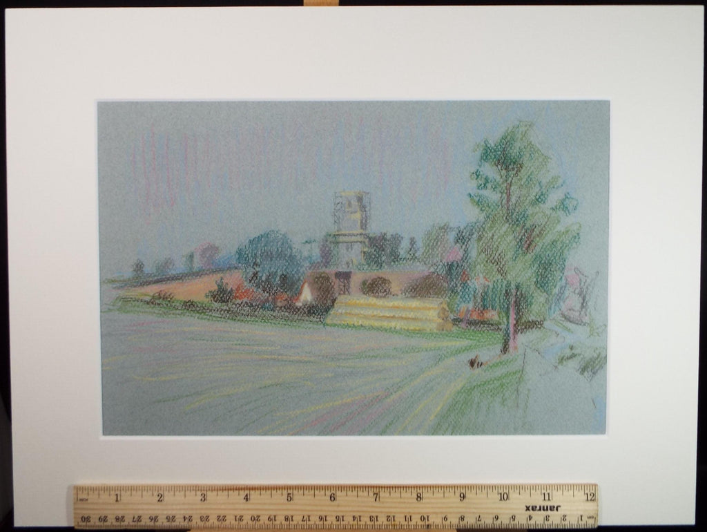 Original Pastel, 'Village Church in a Landscape', Pauline Plummer (b1933), Circa 1990's