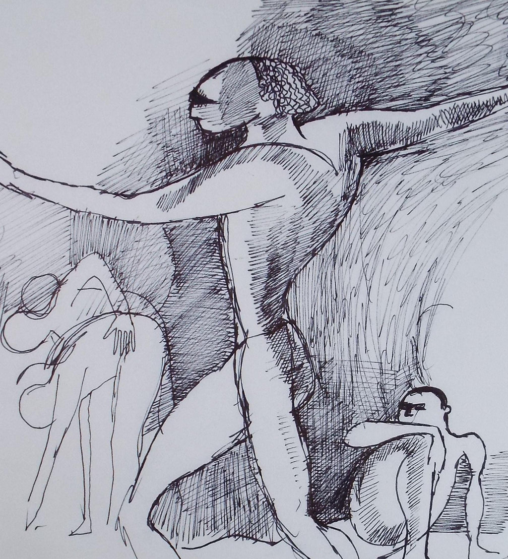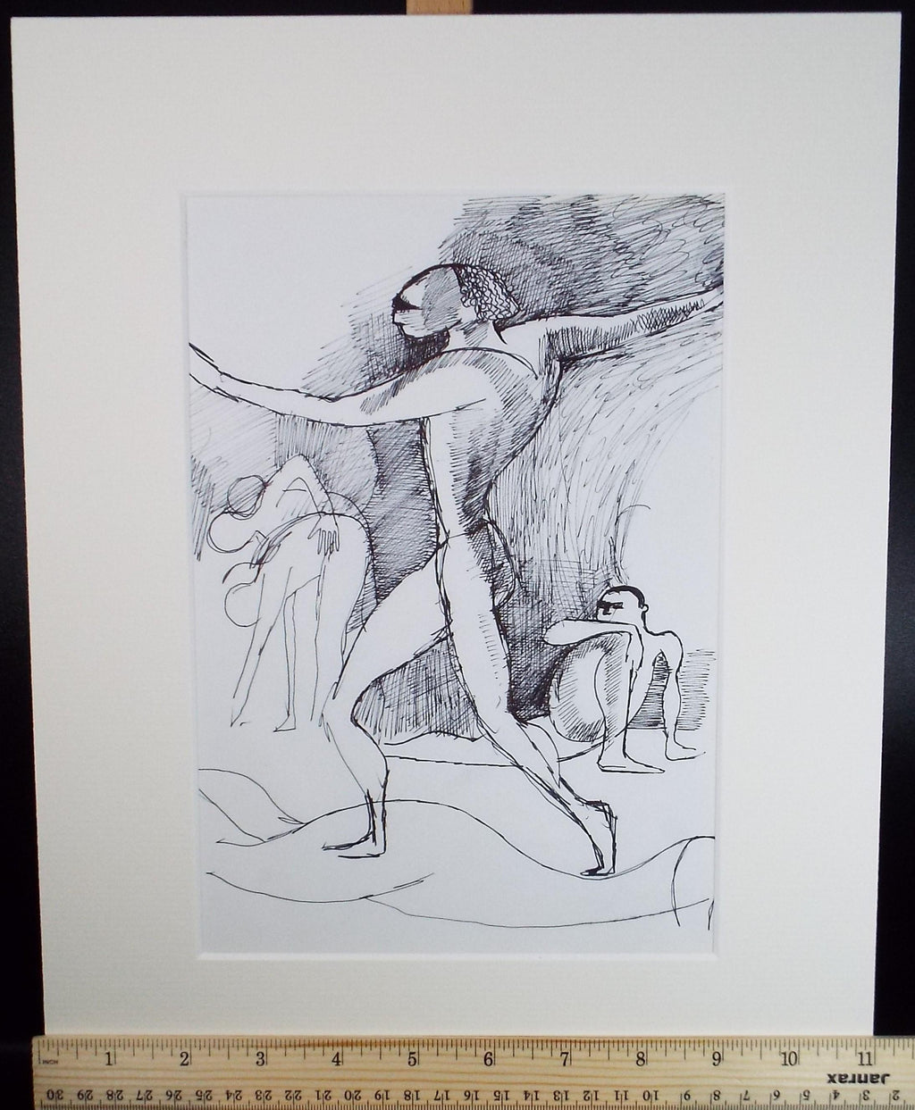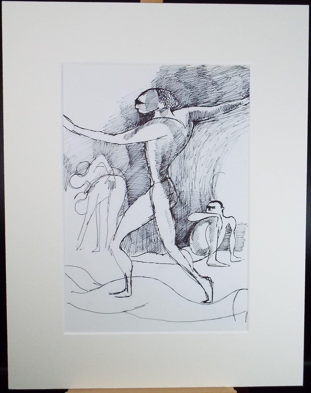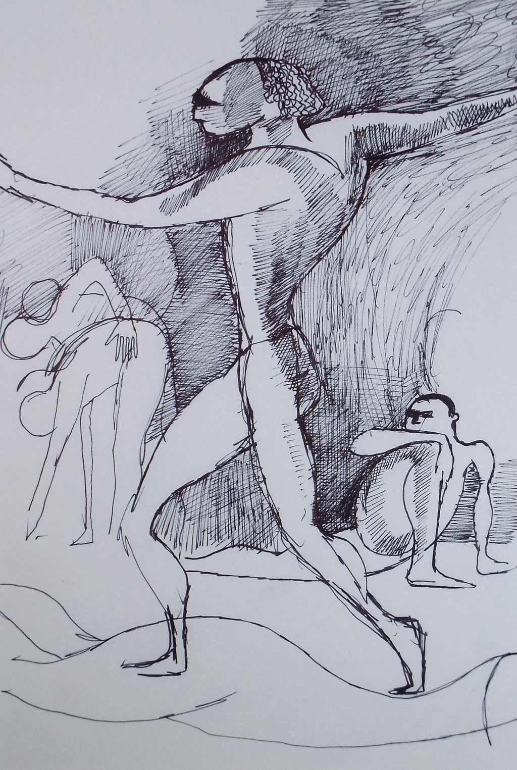 Original Pen & ink Drawing, 'Figures', Artist Unknown, circa 1990's
