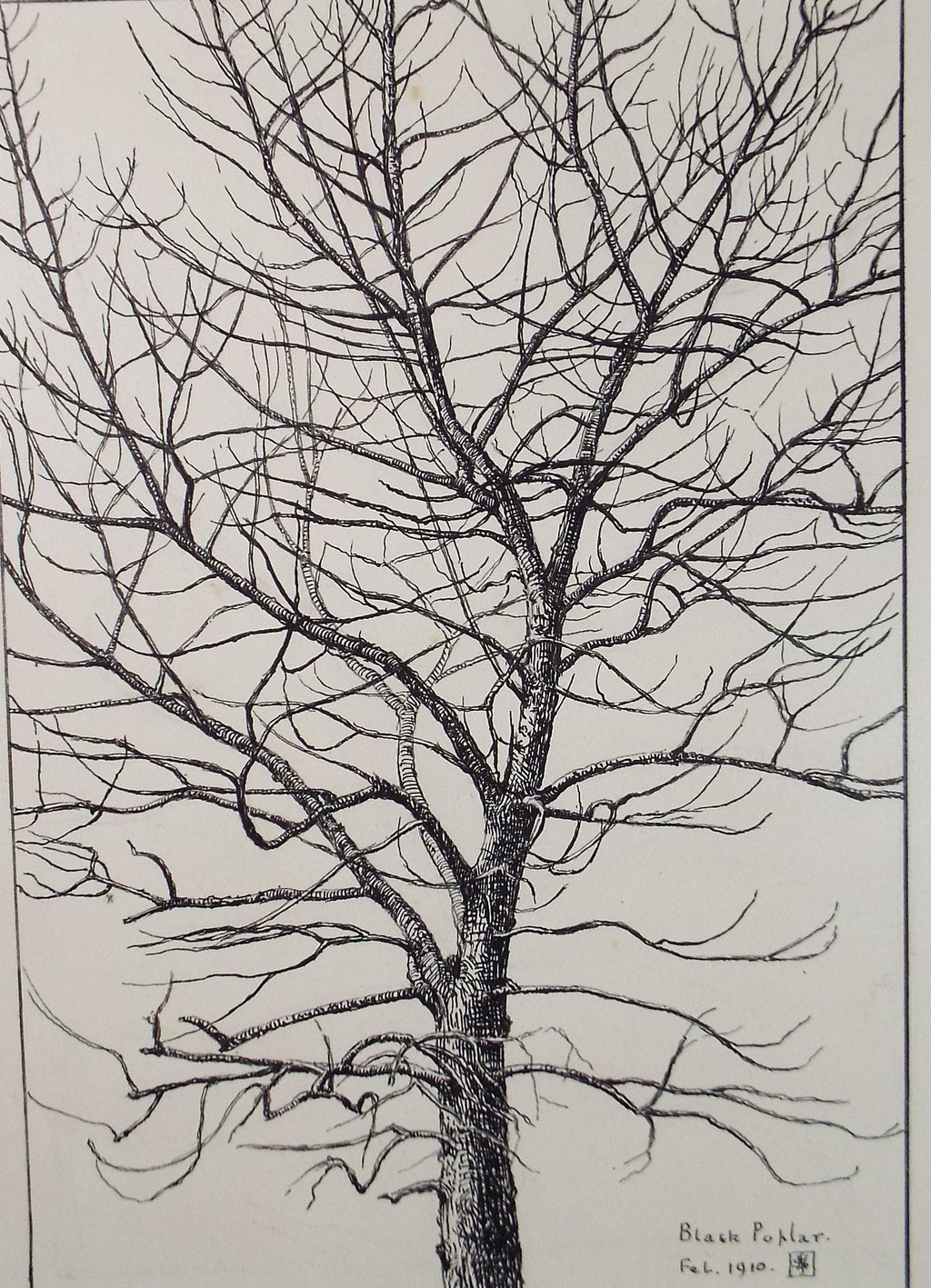 Original Pen & ink Sketch, 'Black Poplar', S A Southern, Dated 1910