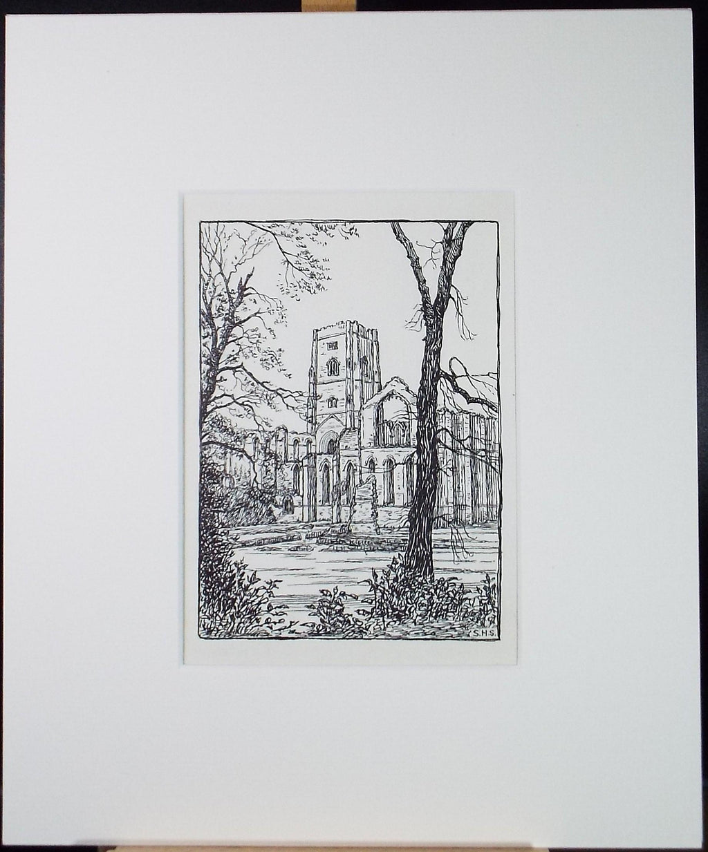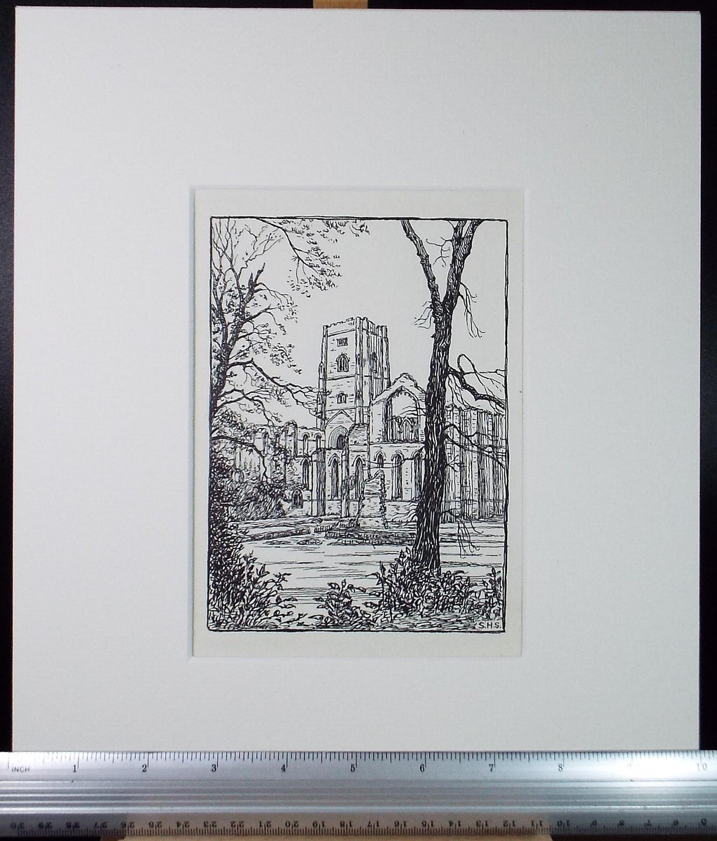 Original Pen & ink Sketch, 'Fountains Abbey', S A Southern, circa 1910