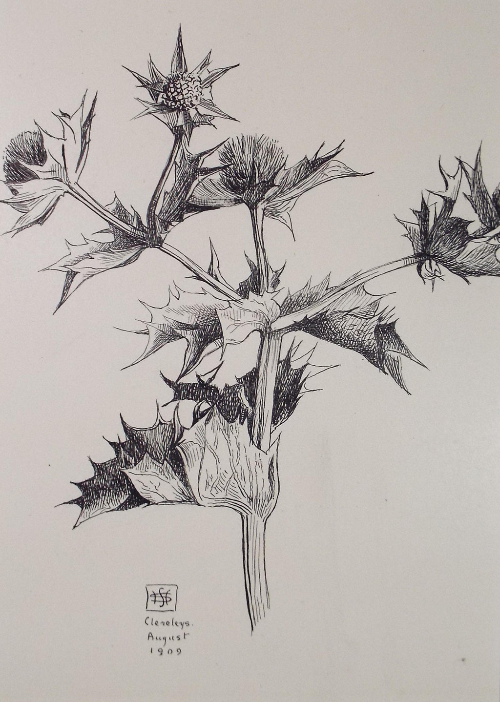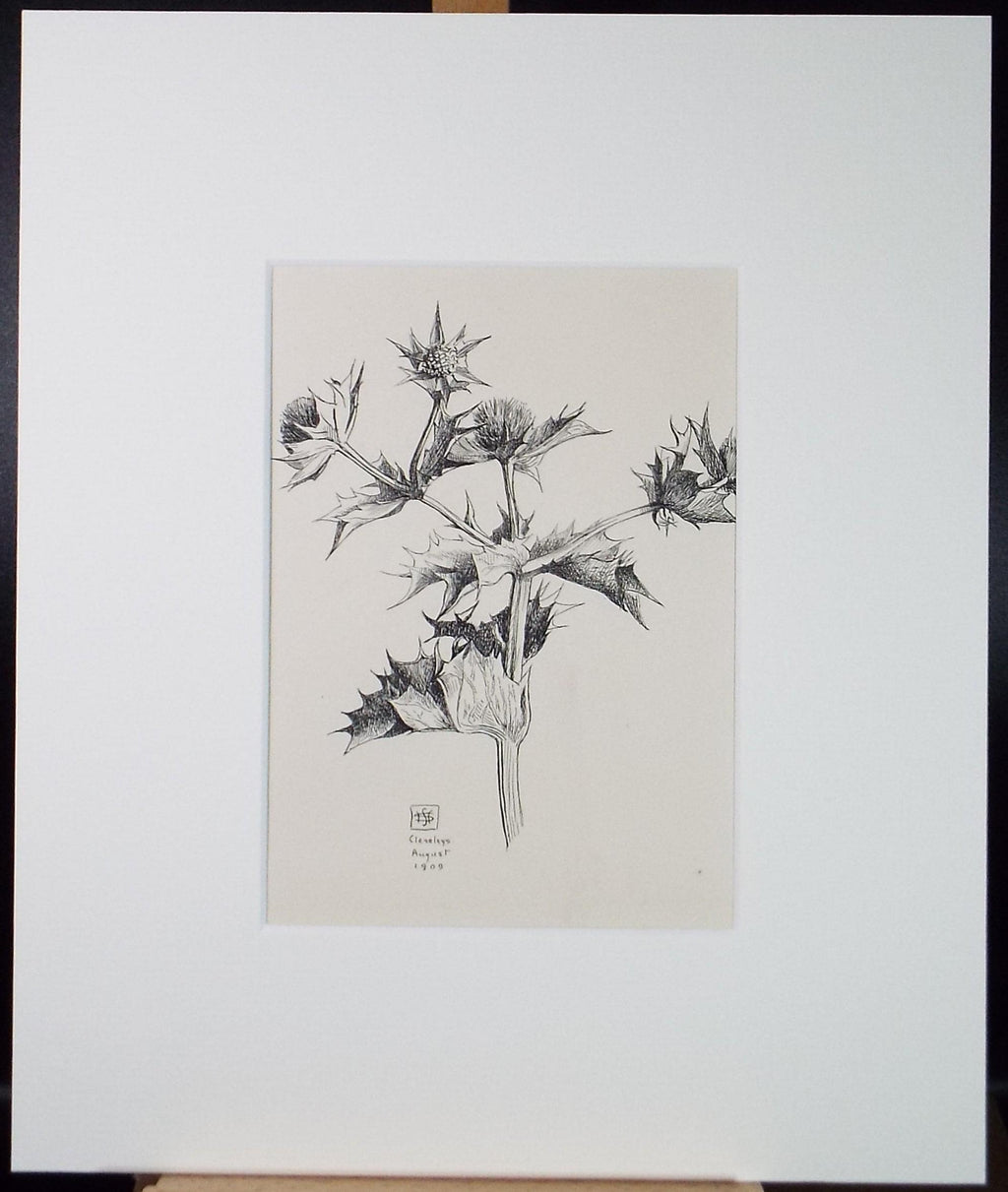 Original Pen & ink Sketch, 'Sea Holly', S A Southern, Dated 1909