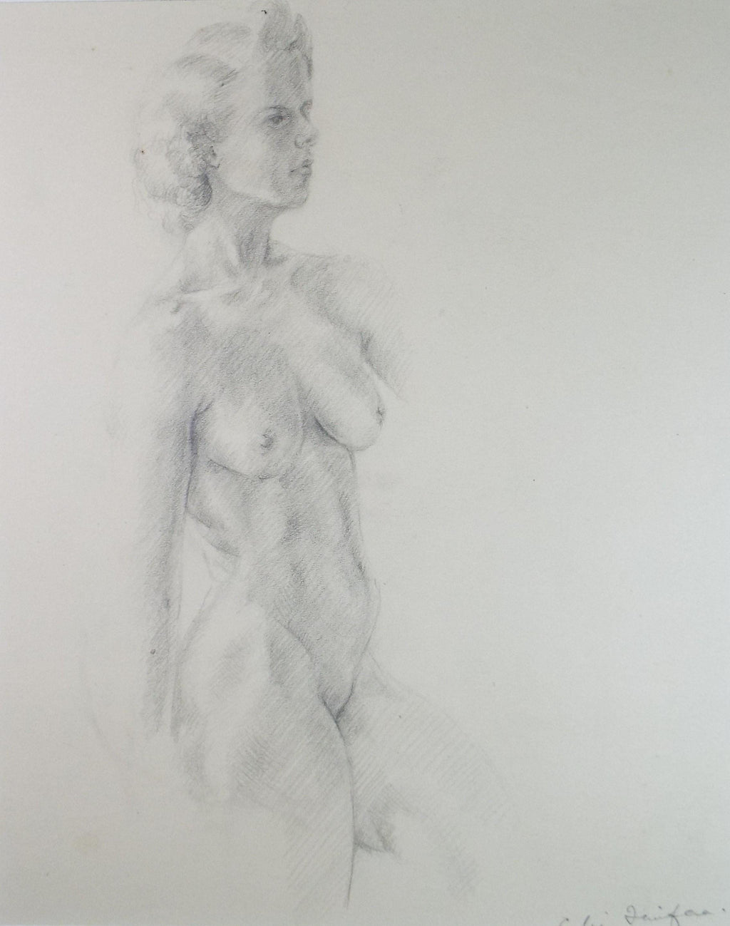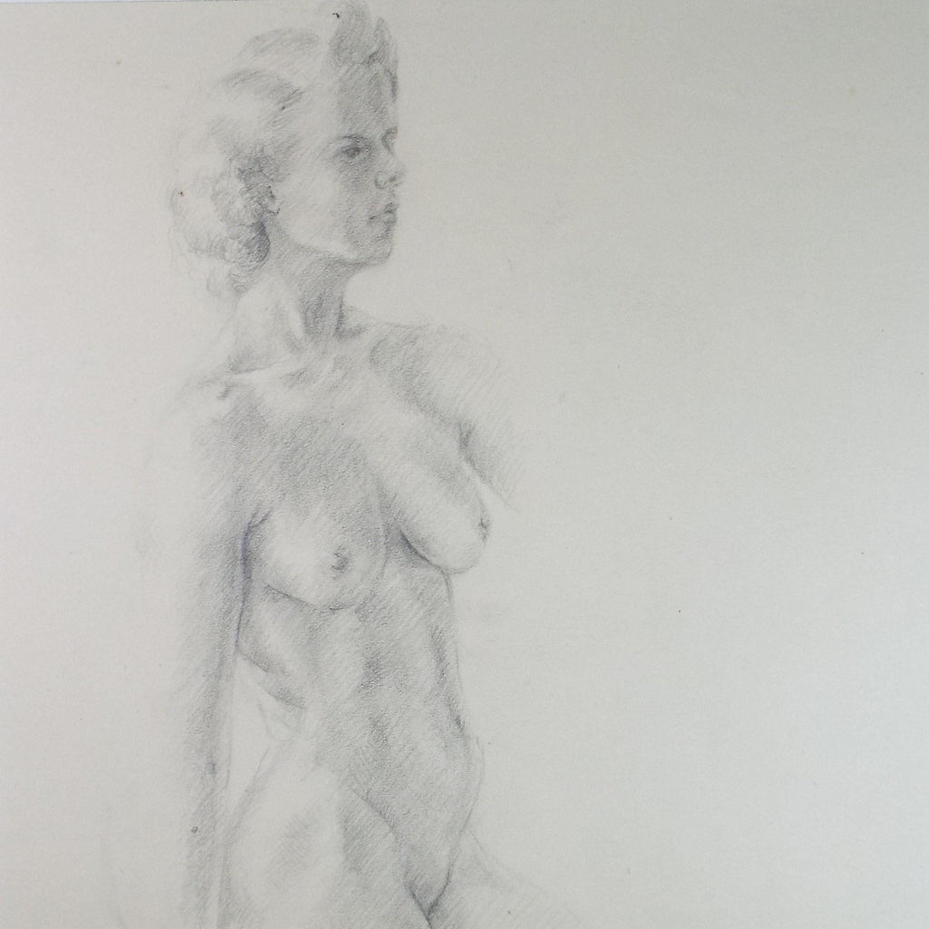 Original Pencil Drawing, 'Female Nude Life Study ', circa 1940's, Celia Fairfax