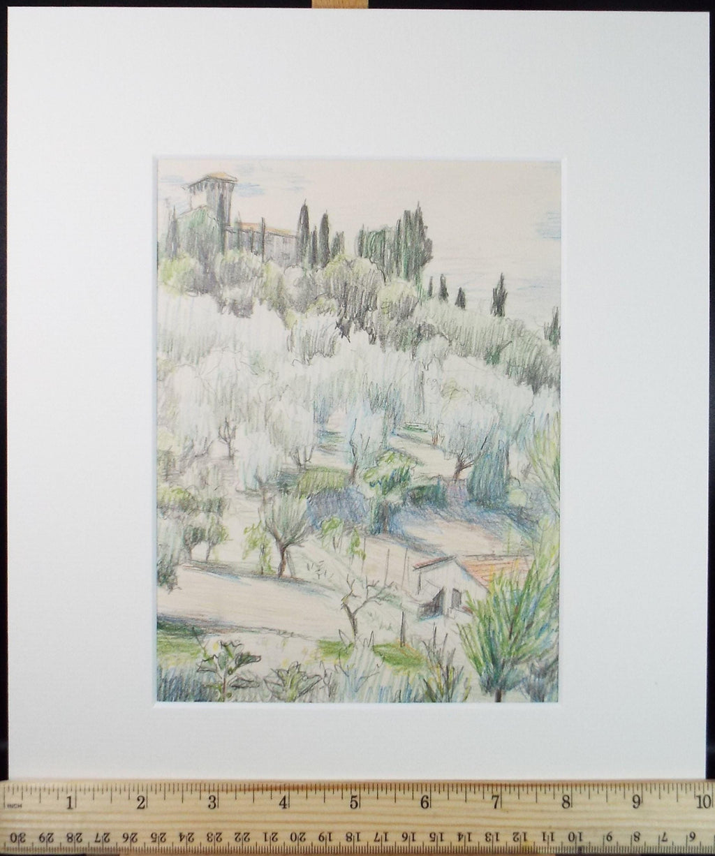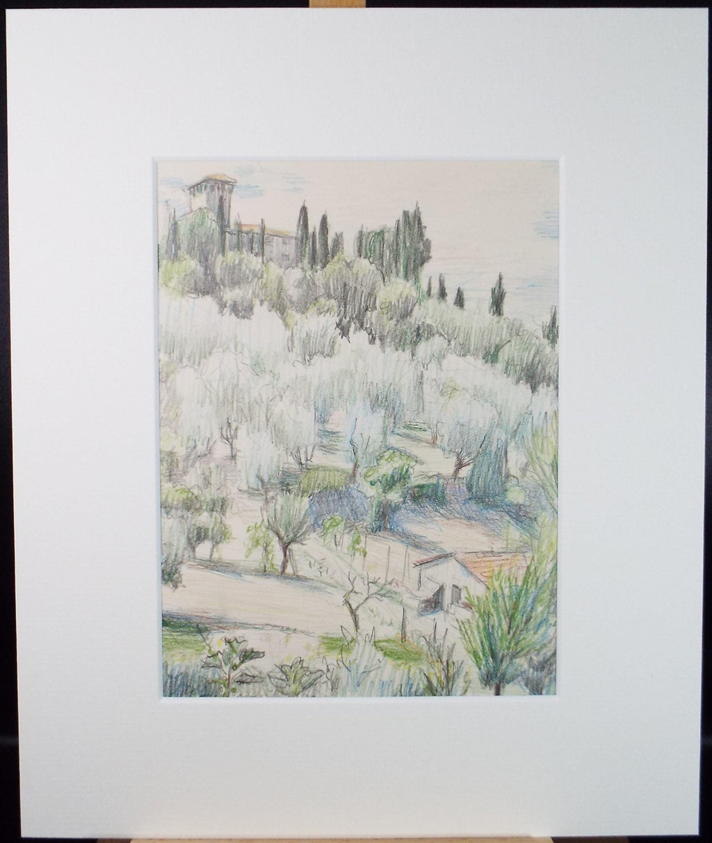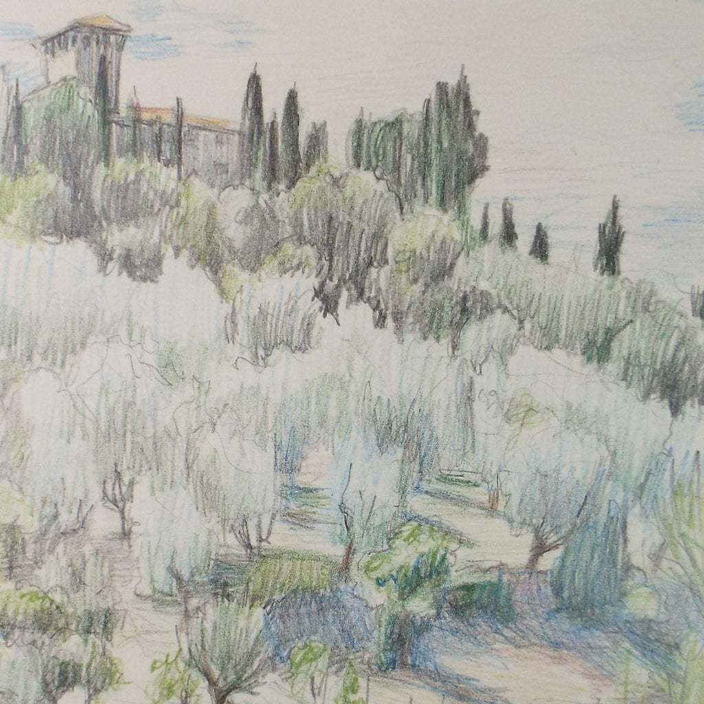 Original Pencil drawing, 'Italian Landscape', Circa 1970s, Pauline Plummer