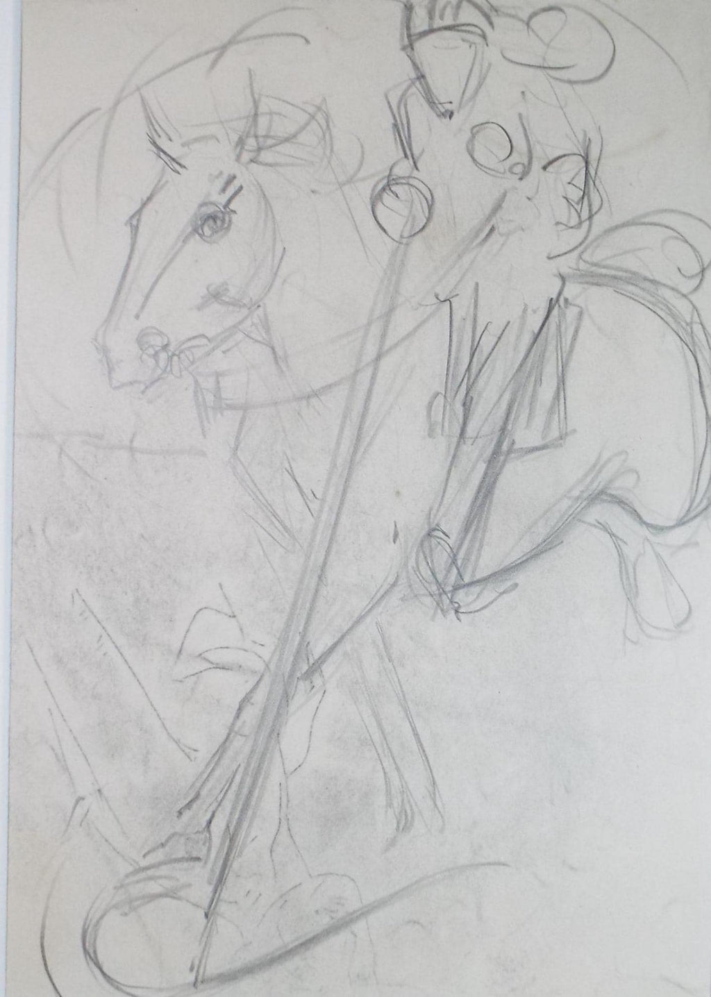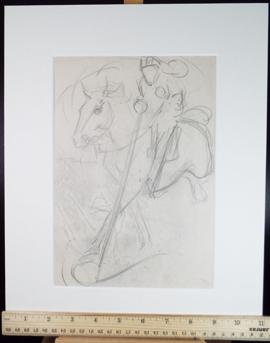 Original Pencil Drawing, 'Knight on Horseback', Dated 1901