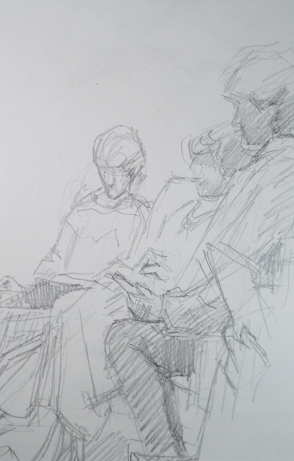 Original Pencil Drawing, 'Seated Figures', Pauline Plummer (b1933), Circa 1990's