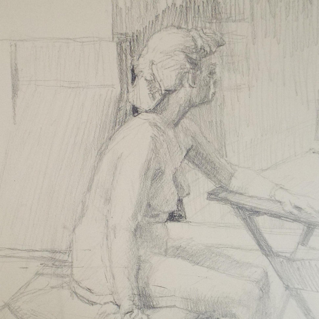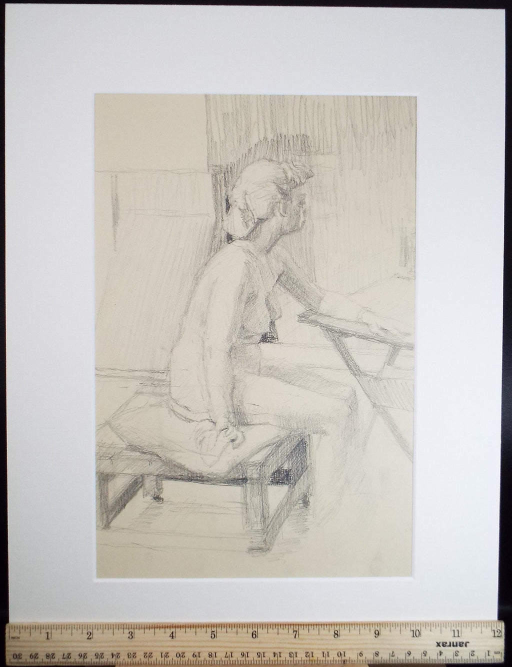 Original Pencil Drawing, 'Seated Female Nude', Pauline Plummer (b1933), Circa 1950's