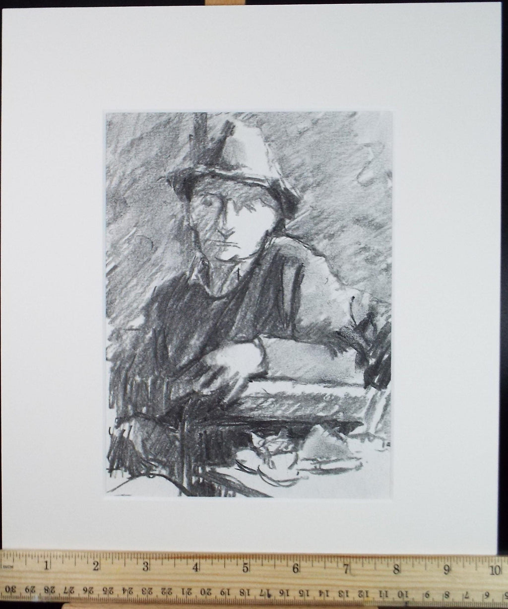 Original Pencil Drawing, 'Seated Man', Pauline Plummer (b1933), Circa 1990's