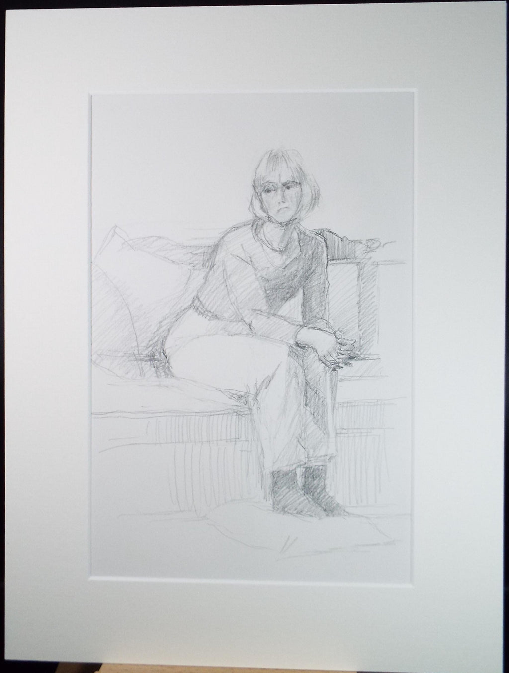 Original Pencil Drawing, 'Woman at a Desk', Pauline Plummer (b1933), Circa 1990's