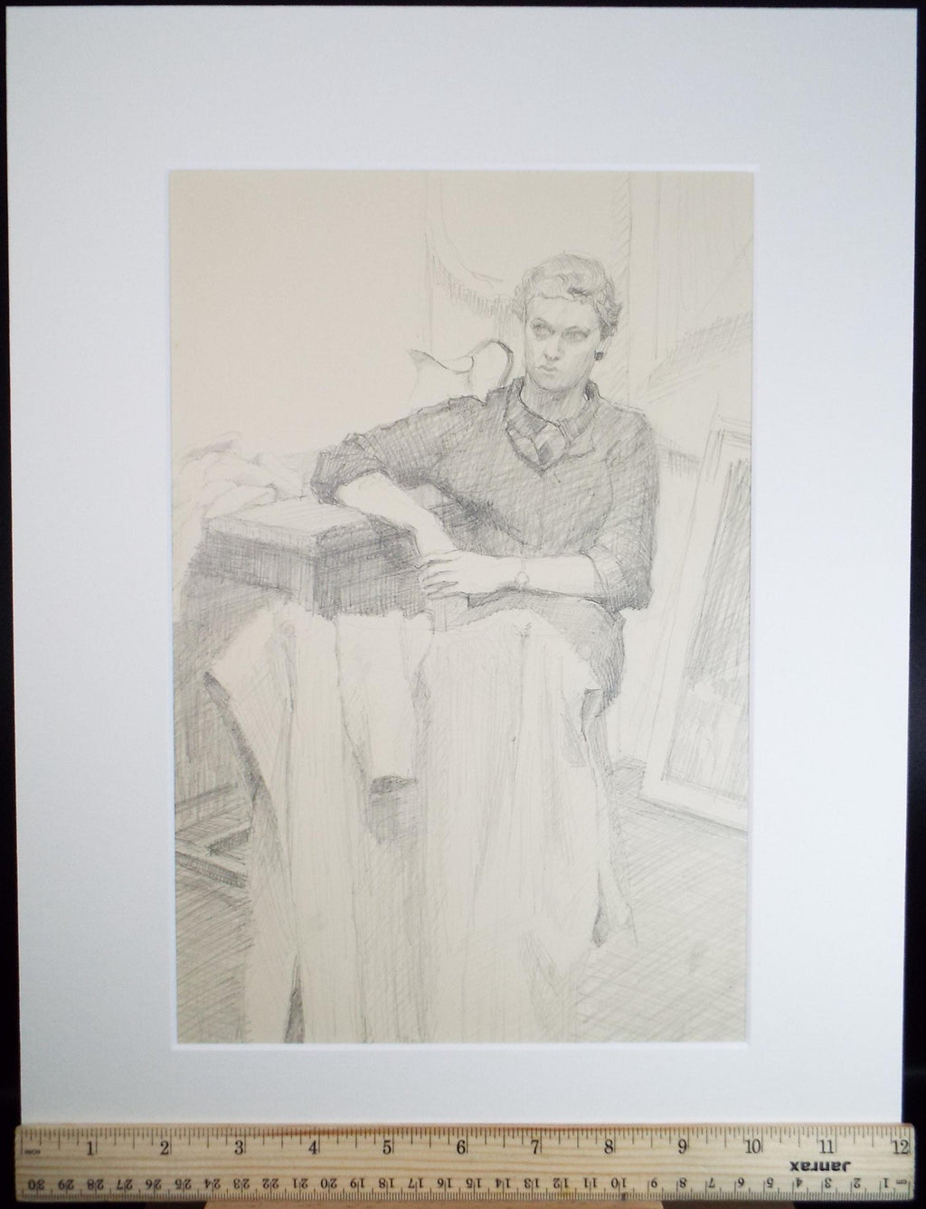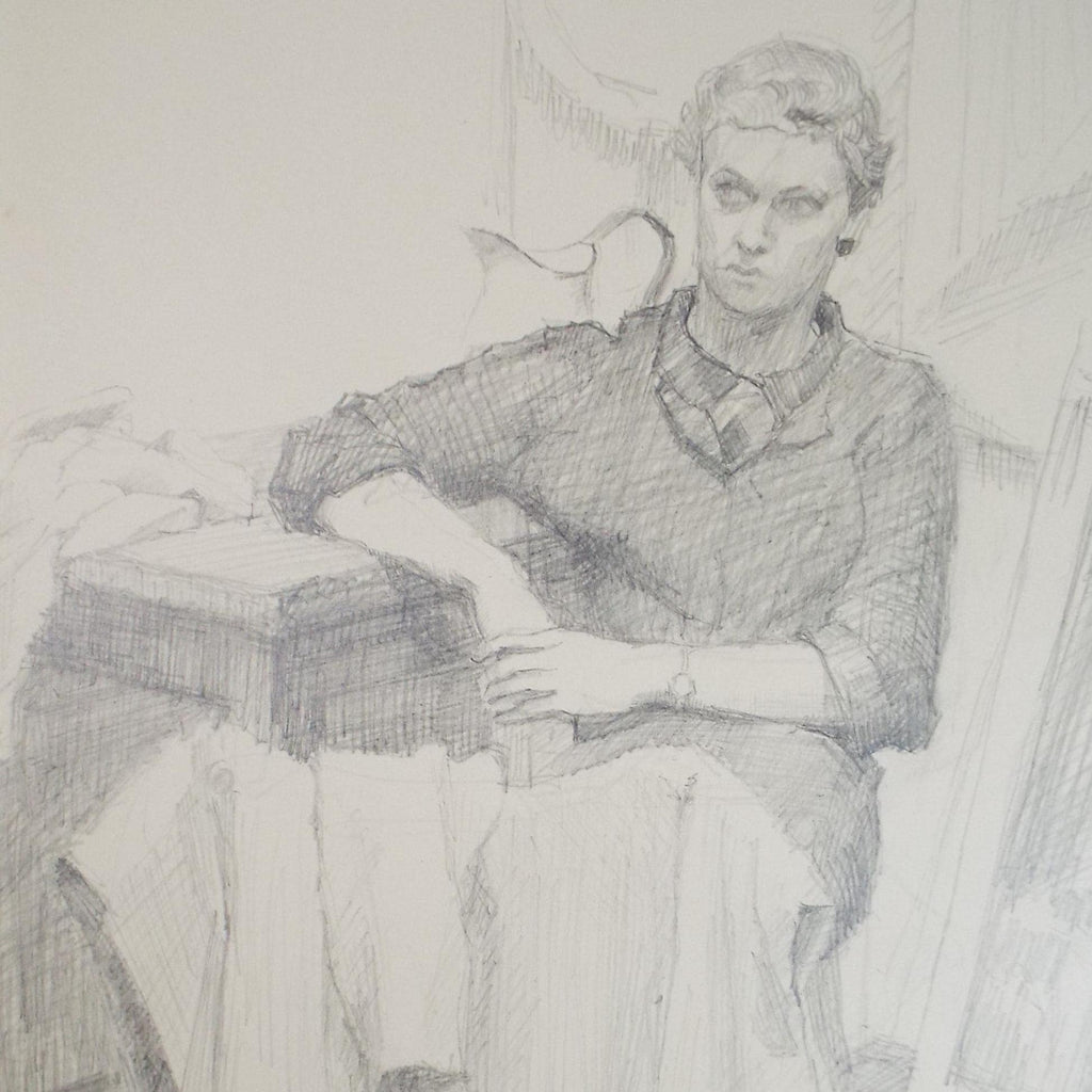 Original Pencil Drawing, 'Seated Woman', Pauline Plummer (b1933), Circa 1950's