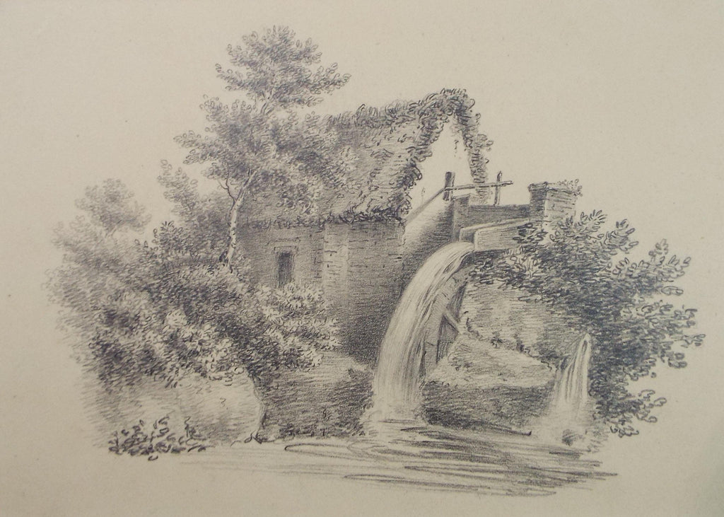 Original Pencil Drawing, 'The Watermill', Late 19th Century, unsigned
