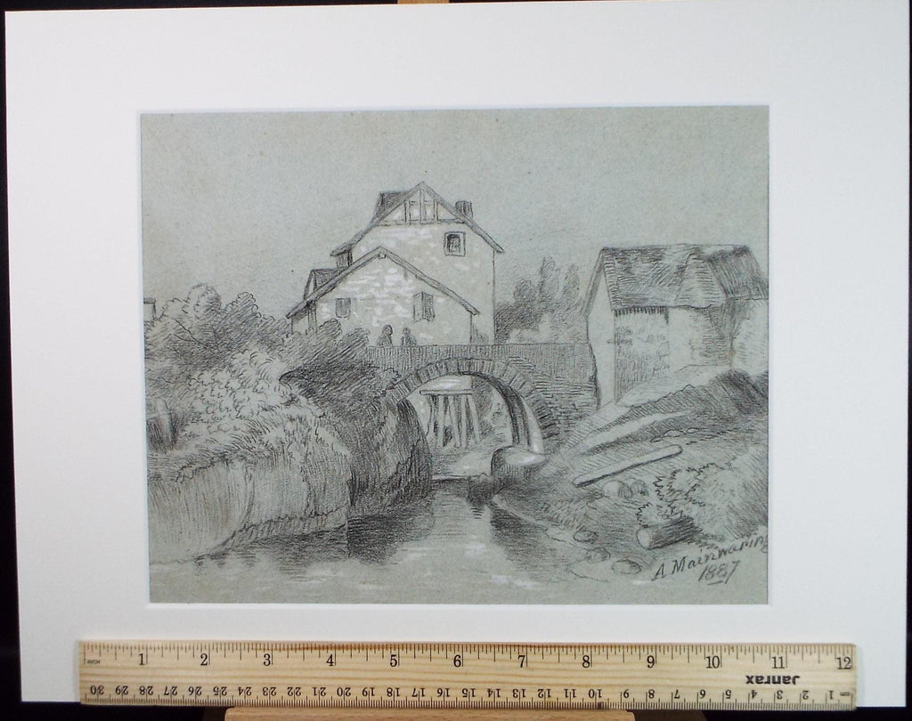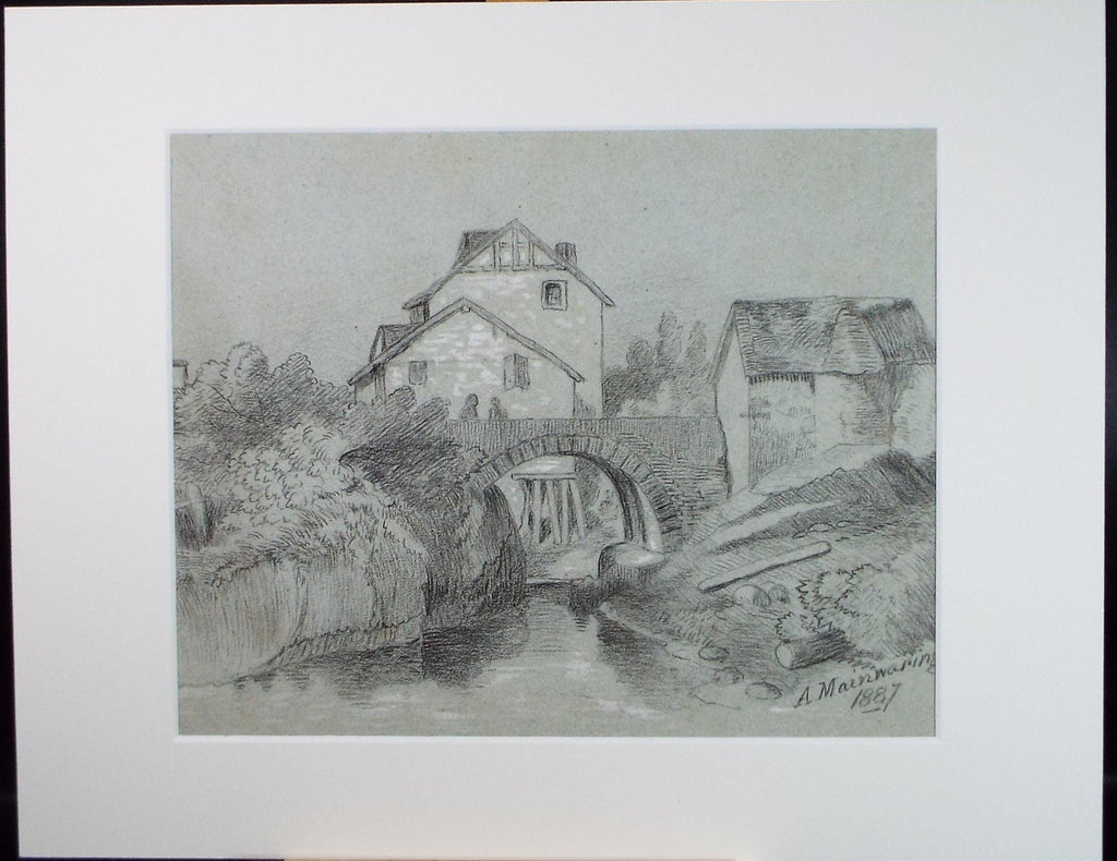 Original Pencil Drawing, 'Warehouse & figures', A Mainwaring, dated 1887