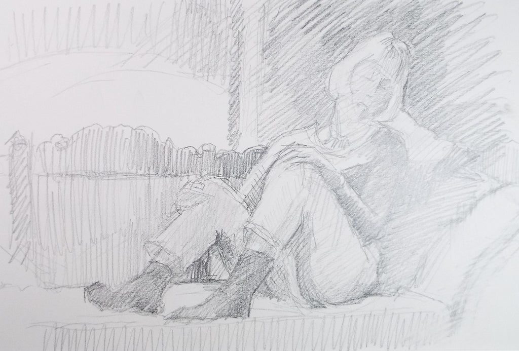 Original Pencil Drawing, 'Woman on a Couch', Pauline Plummer (b1933), Circa 1990's