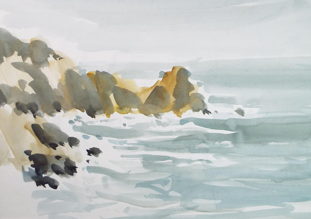 Original Watercolour, 'Rocky Coast', Circa 1990's, Unknown artist