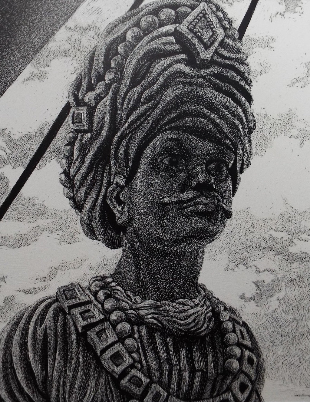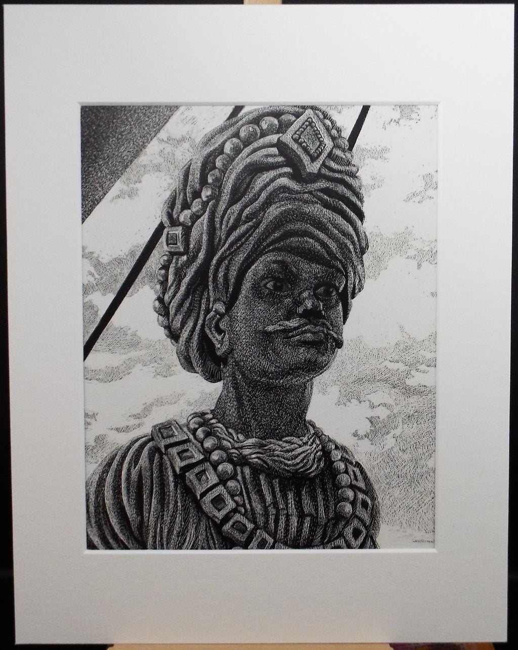 Original Scraperboard drawing, 'Man in a Turban', Lorraine Abraham RSMA (1941-2023), Circa 1990's