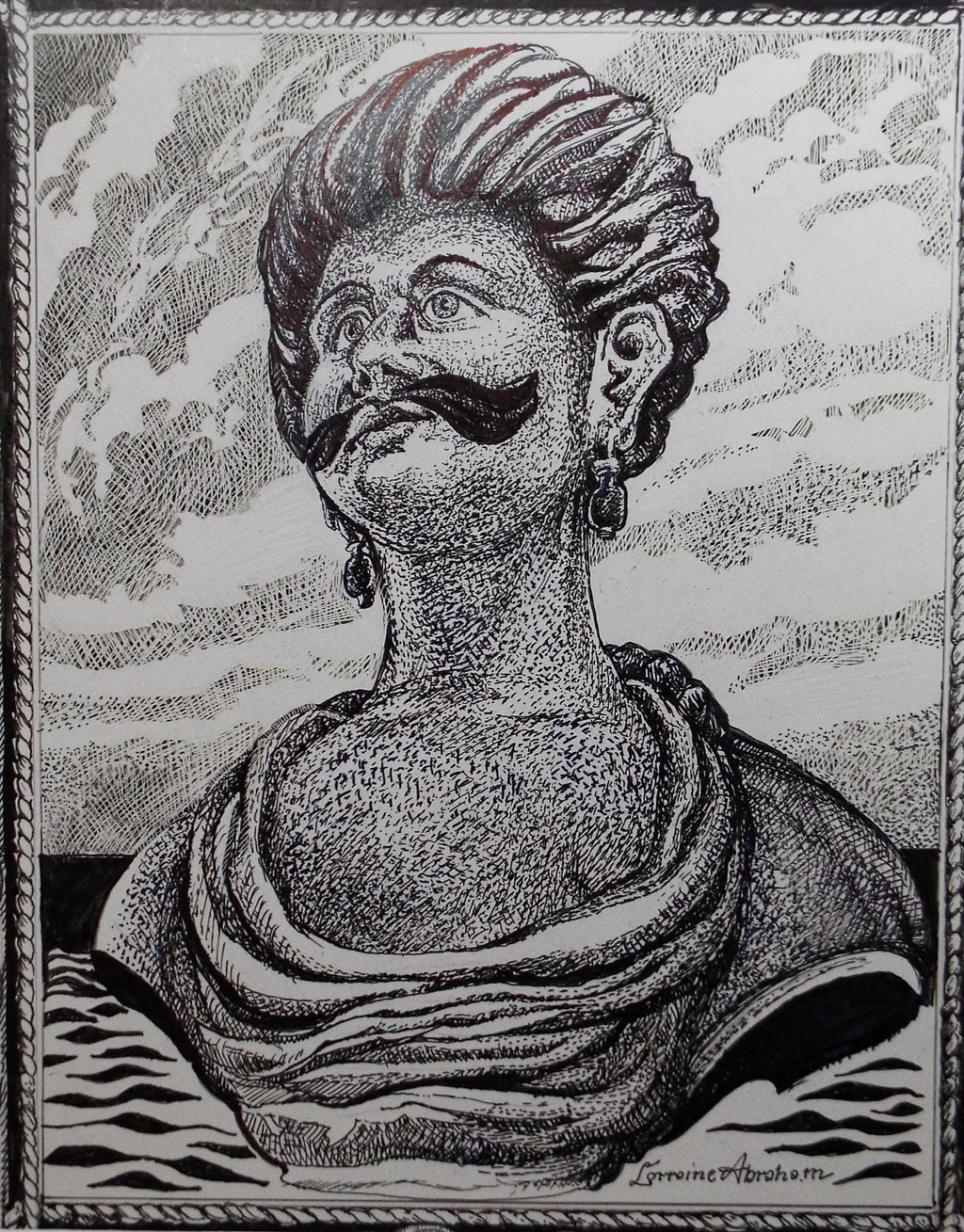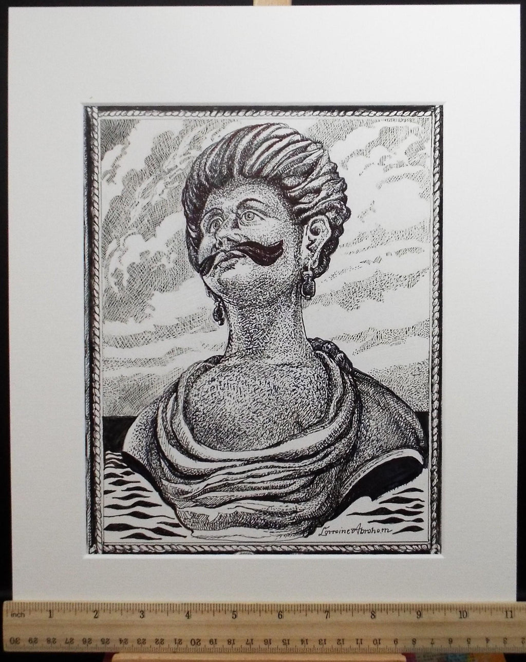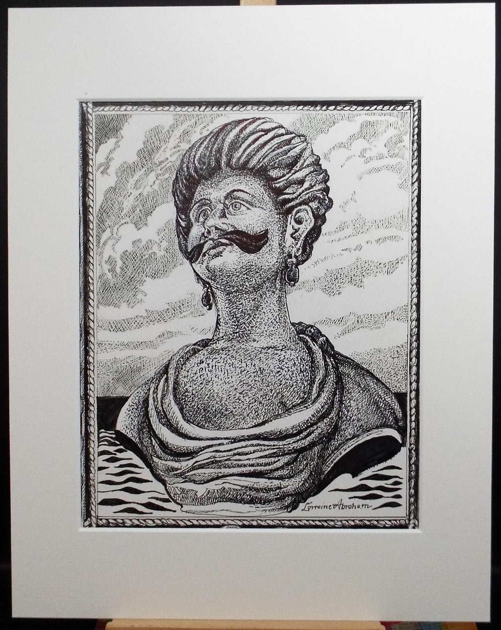 Original Scraperboard & Ink drawing, 'Figurehead', Lorraine Abraham RSMA (1941-2023), Circa 1990's