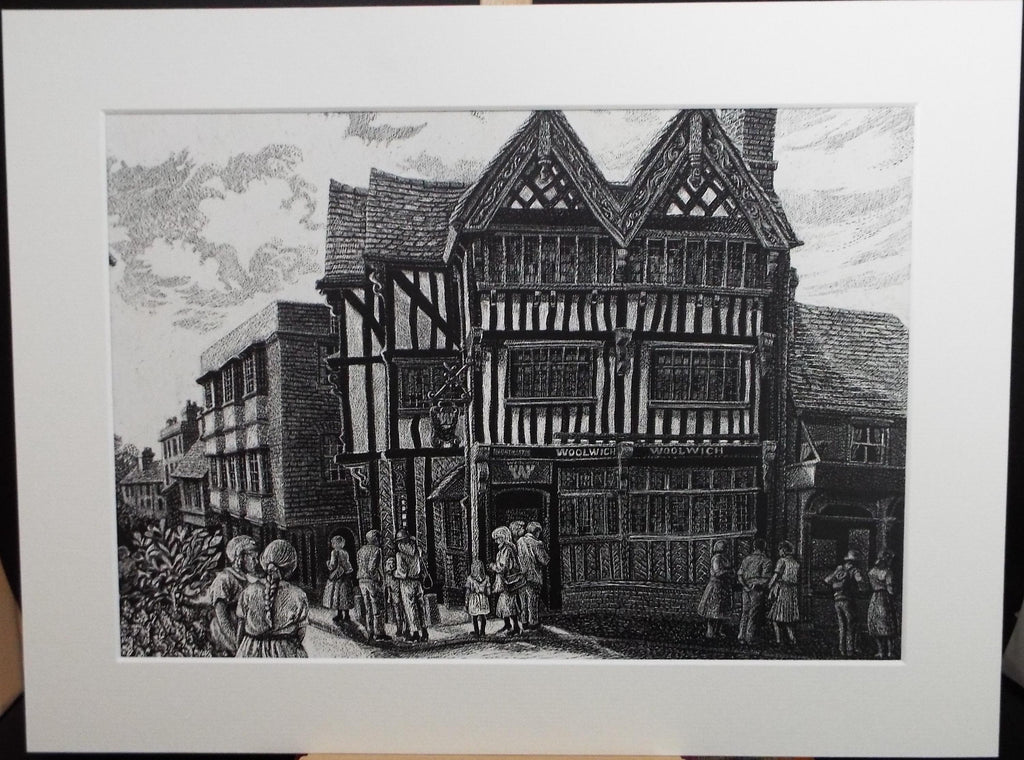 Original Scraperboard & ink drawing, 'The Woolwich, Leatherhead', Lorraine Abraham RSMA (1941-2023), Circa 1990's