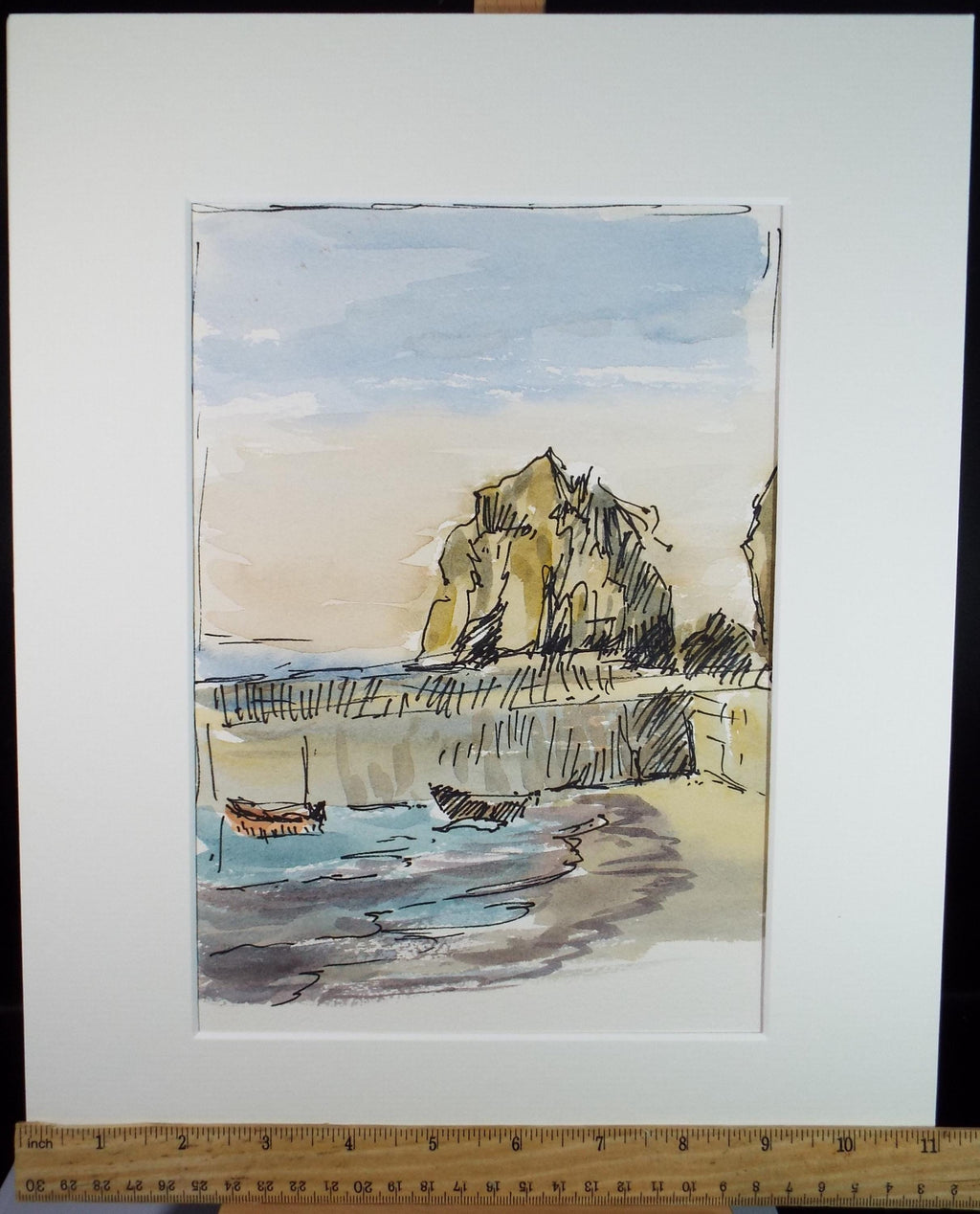 Original Watercolour, 'Beach with Moored Boats', Gwen Rayner, c1970's