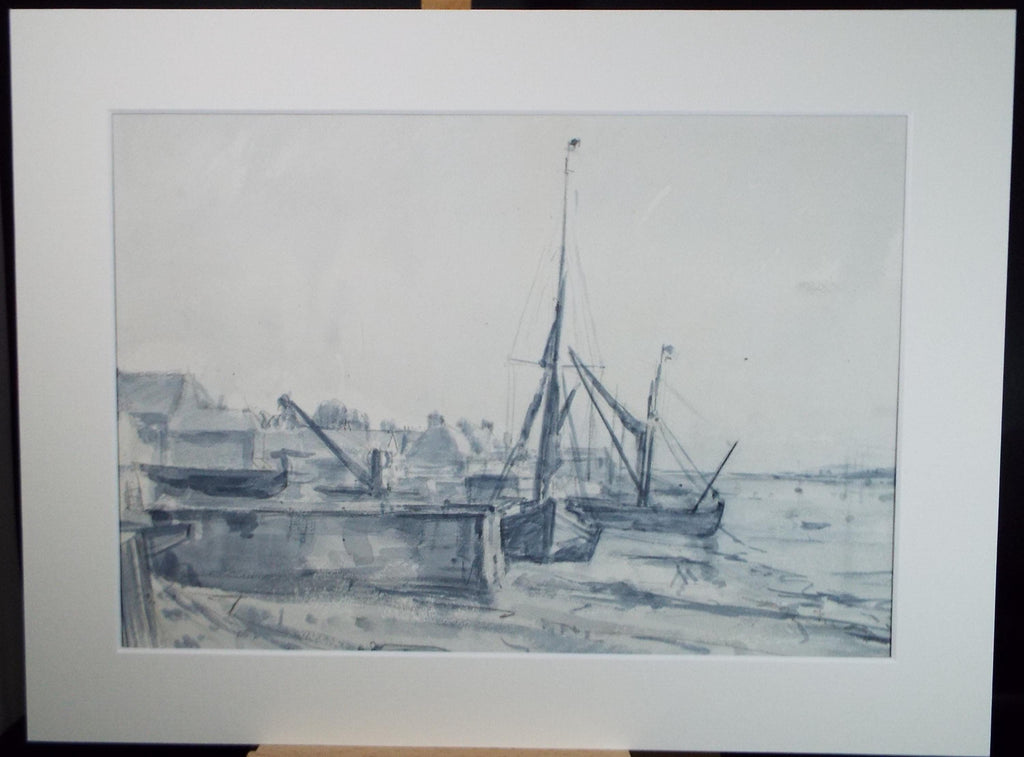 Original Watercolour, 'Boats on the shore', A E Borthwick (1871-1955), circa 1940's