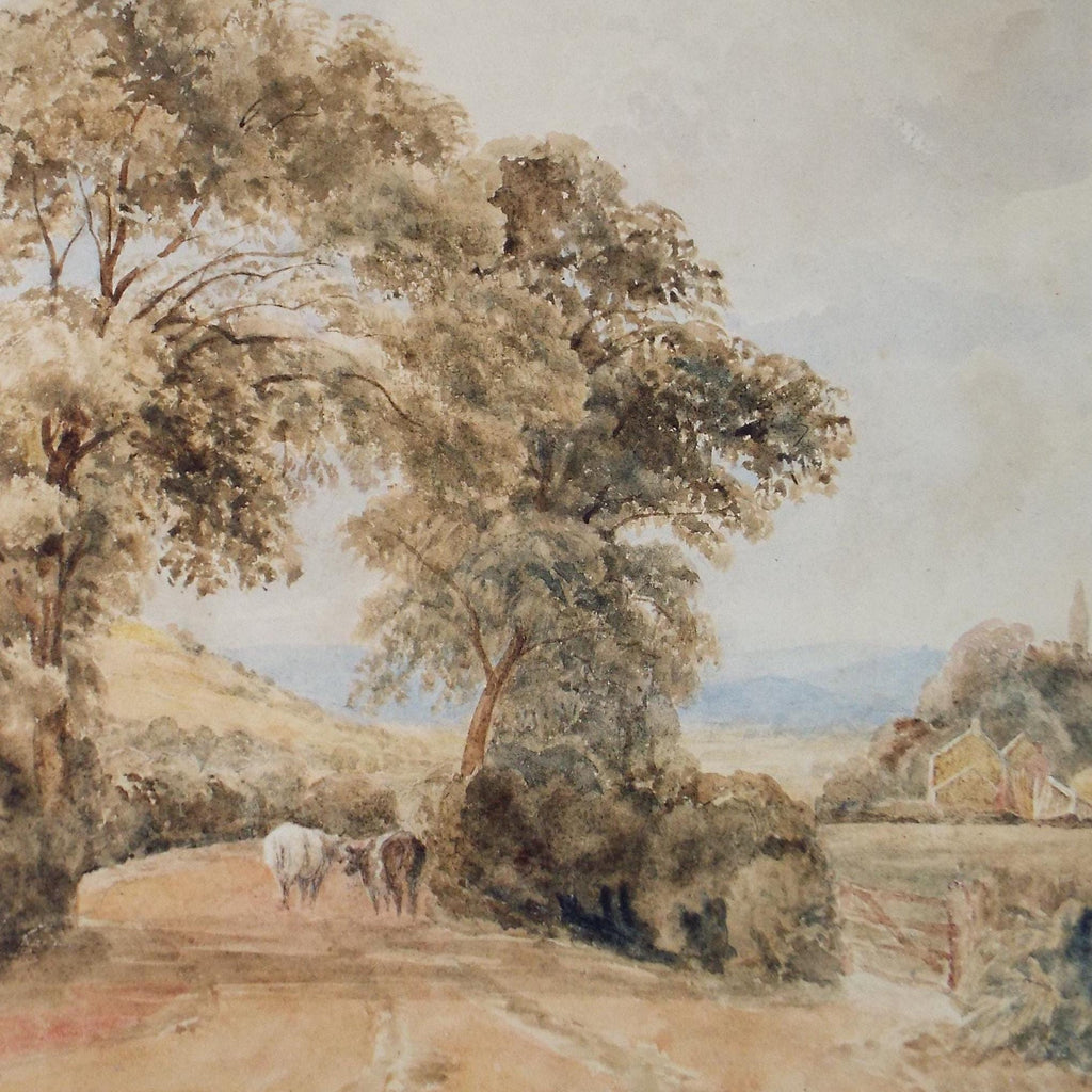 Original Watercolour, 'River with Cattle & Figure' - Late 19th Century, Artist Unknown