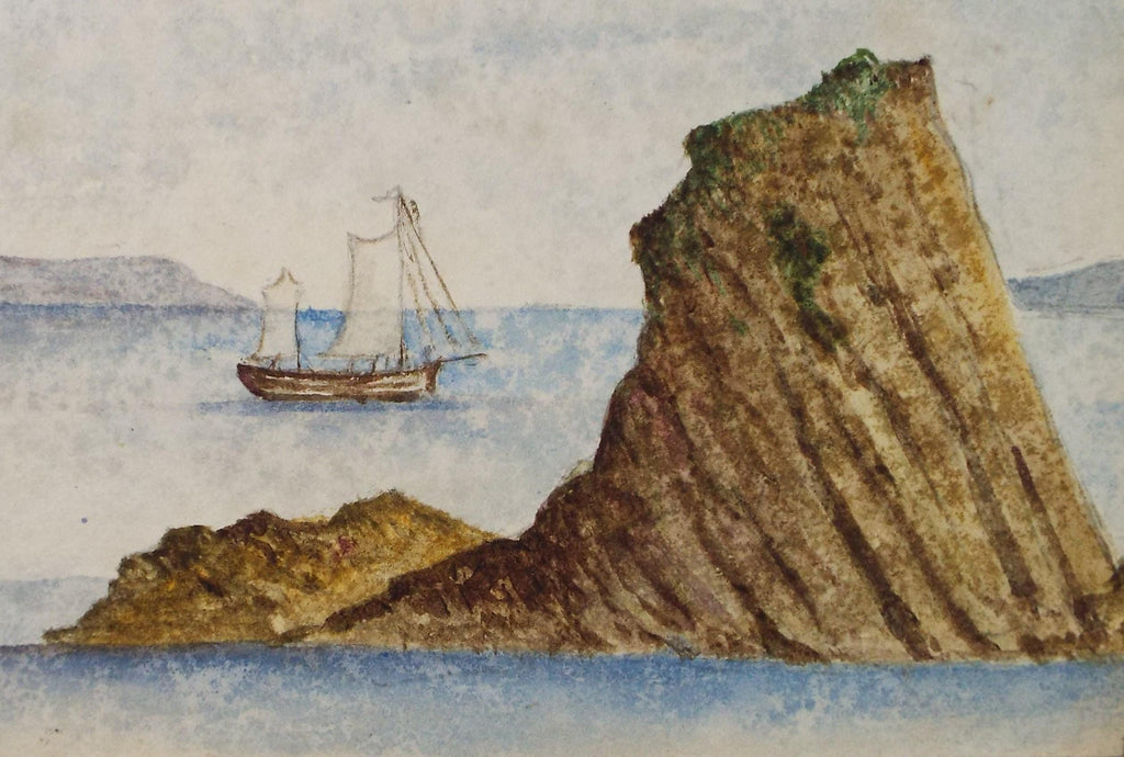 Original Watercolour circa 1890, 'Sailing off the coast', Unknown Artist - Marine Landscape