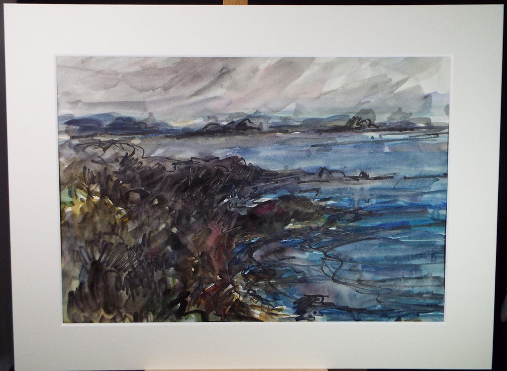 Original Watercolour, 'Coastal Landscape', artist unknown, circa 1990's