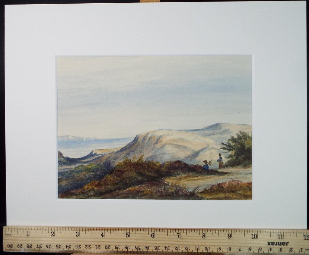 Original Watercolour, 'Coastal dunes with figures' Circa 1880's, unsigned