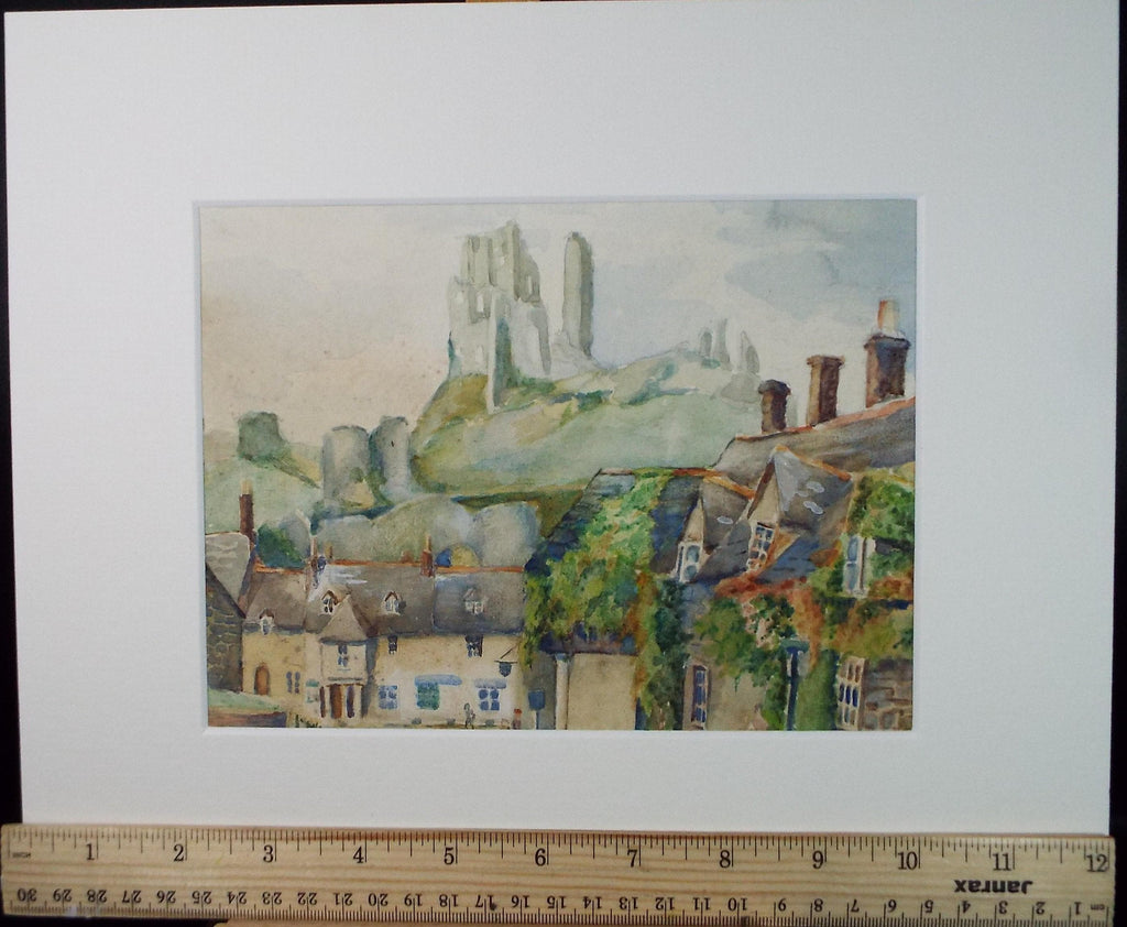 Original Watercolour, 'Corfe Castle', Circa 1930's , Unknown Artist