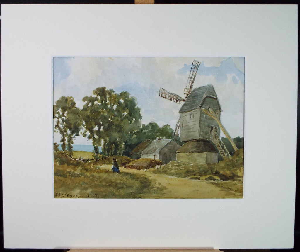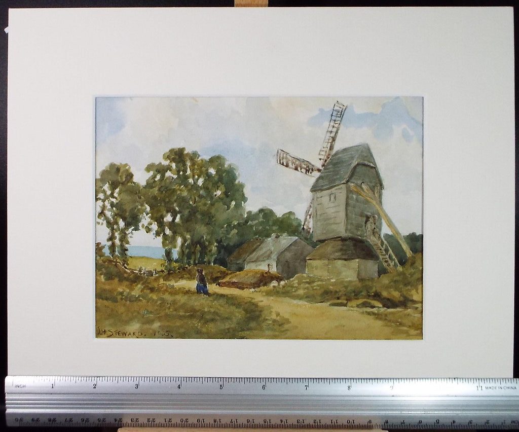 Original Watercolour Drawing, 'Figure before a Windmill', J H Steward, Dated 1905